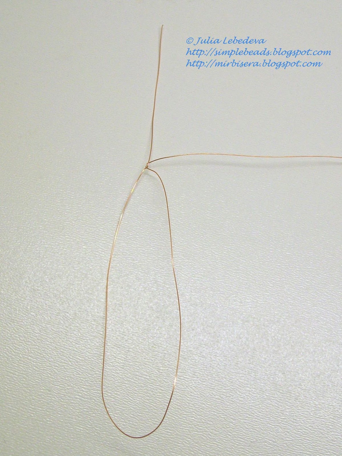 Берём проволоку длиной 50 см, складываем её вдвое так, чтобы один конец был длиной примерно 15 см, а другой - 35 см, после чего длинный конец проволоки перекручиваем на два-три оборота посередине короткого конца проволоки. У нас получилась петелька, из которой выходят два конца проволоки.