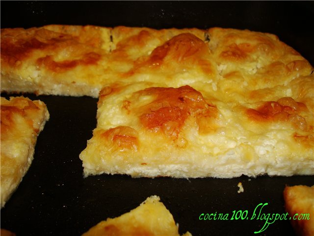 Дальше все повторяется: 2 листа теста, брынза, последний слой должен быть тесто. Теперь баницу нужно разрезать на кусочки примерно на 12 частей, но можно и побольше, и поменьше, зависит от вашего вкуса.Теперь равномерно поливаем растопленным сливочным маслом или маргарином.