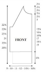 Front edging:With RS of work facing and smaller needles, pick up and knit 64 (64-66-66-66-68) sts along front edge.