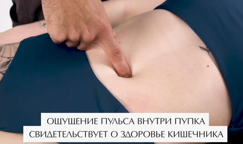 Если этого не происходит, если мы не чувствуем биение крови внутри пупка, возможно, у вас плохо с чувствительностью, послушайте биение крови по сонной артерии. Если вы чувствуете, а внутри пупка не чувствуете, это означает, что кишечник у вас смещён.