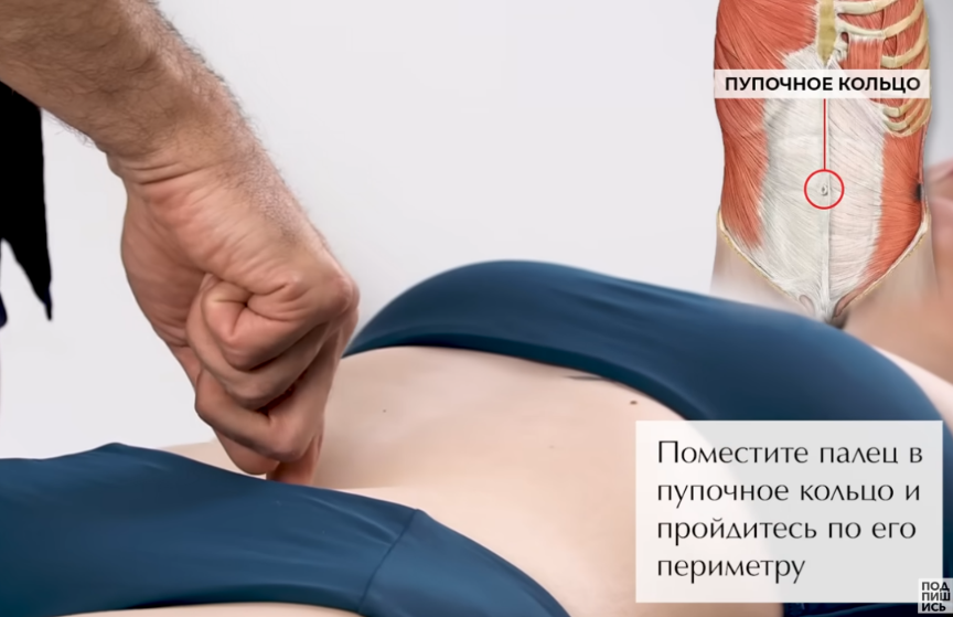 Нащупайте пупочное кольцо: поместите пальчик в пупочек и пройдитесь по периметру пупочного кольца. Некоторые из вас с удивлением обнаружат, что в каких-то направлениях пупок будет резко болезненным.