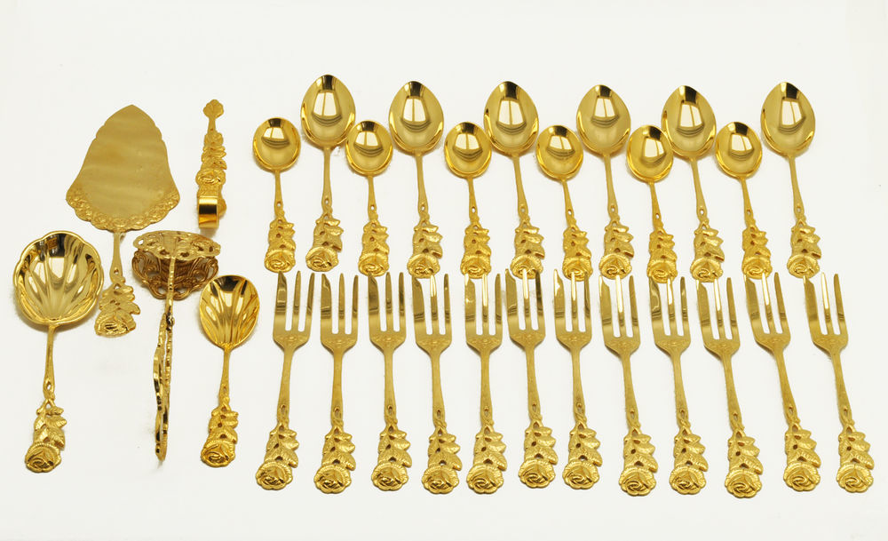 На фото ниже изображены посеребрённые и позолоченные десертные наборы.