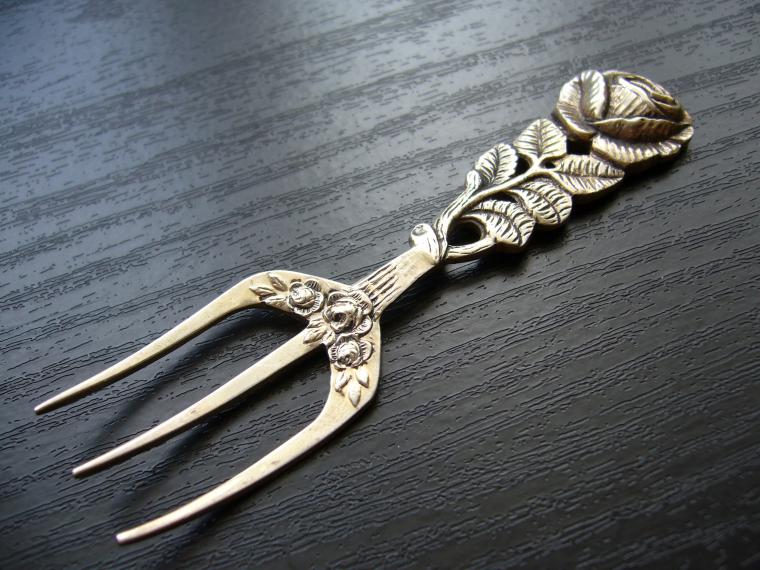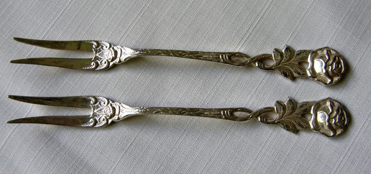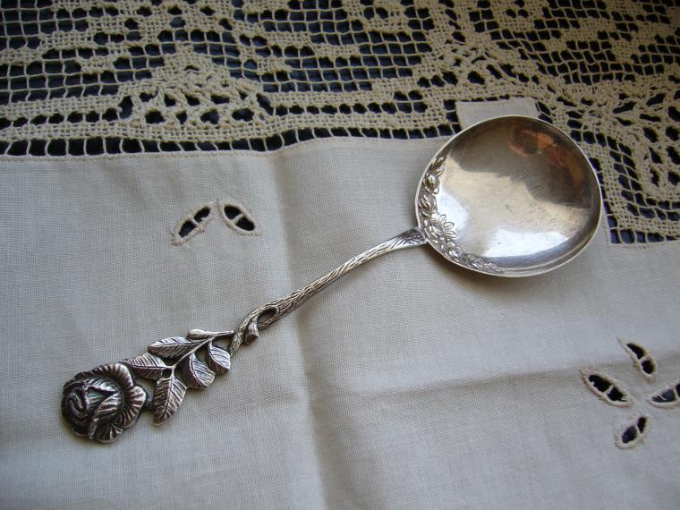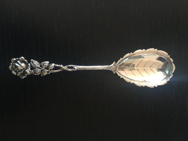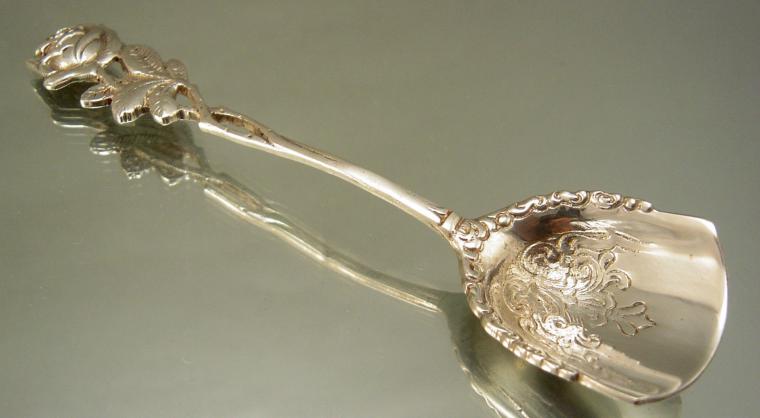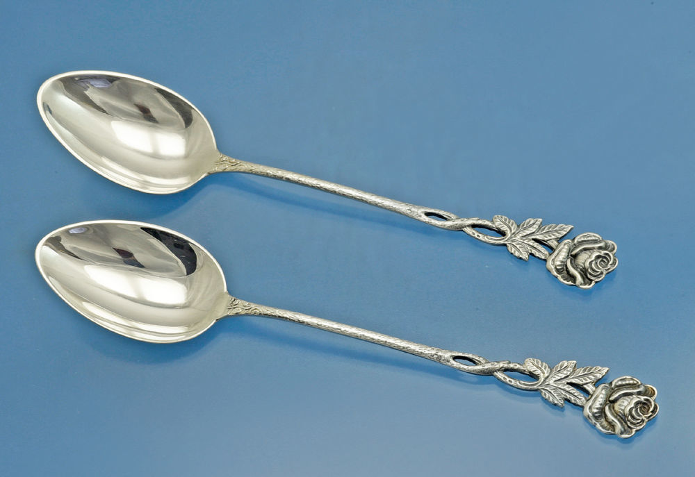 Даже далекий от ботаники человек узнает цветок розы. Поэтому совершенно не удивительно, что среди столового серебра появились приборы, черенок которых украшает этот цветок. И, как правило, все эти изделия выполнены в «античном стиле».