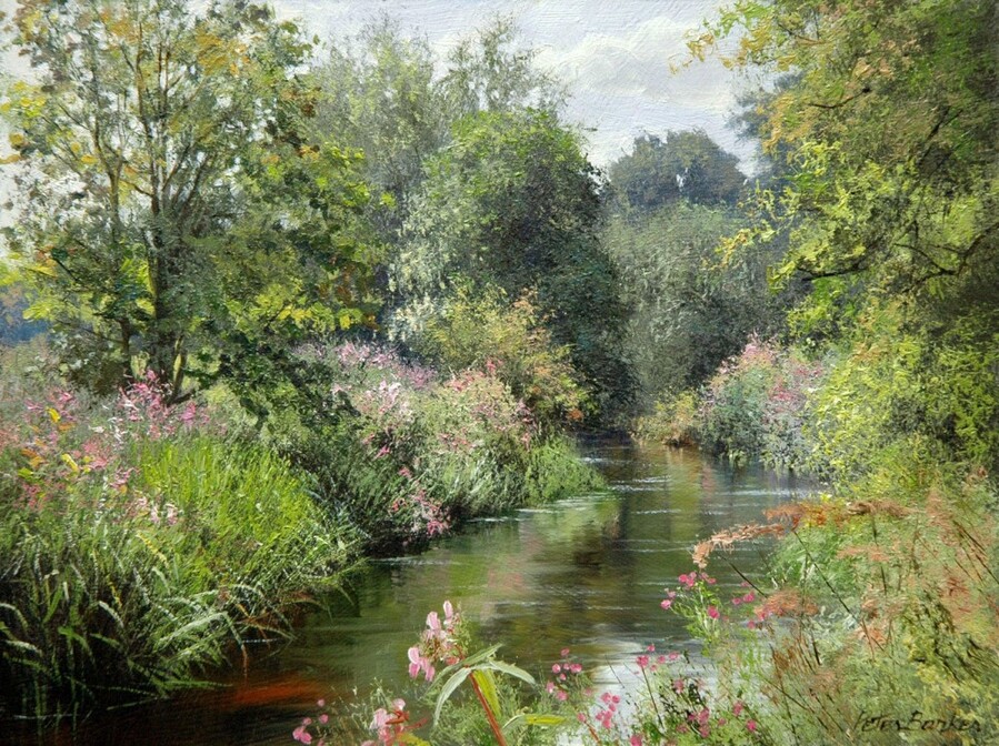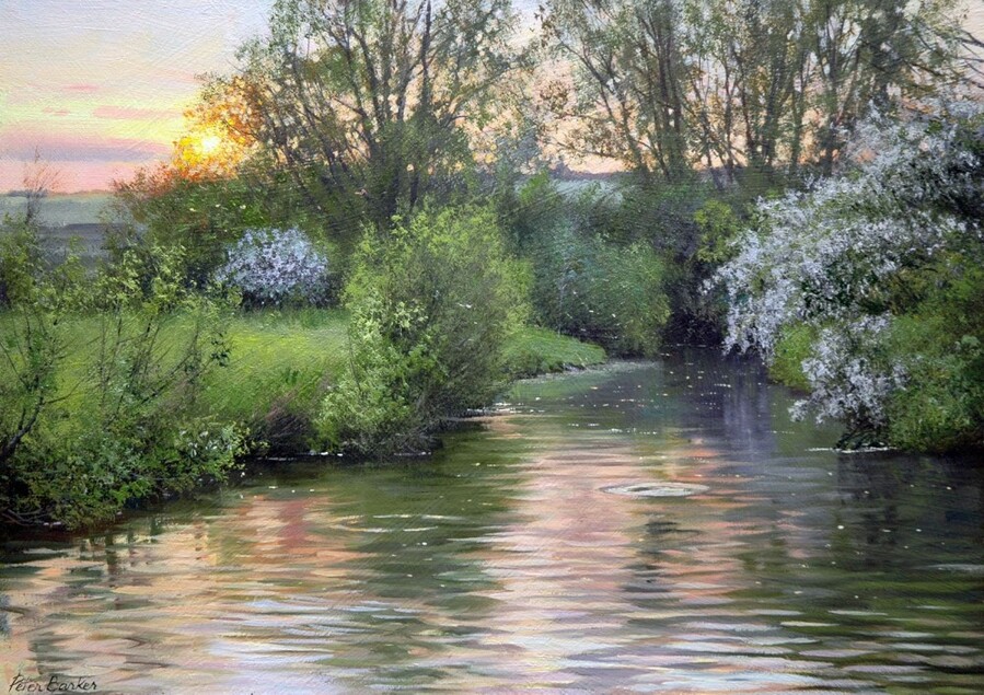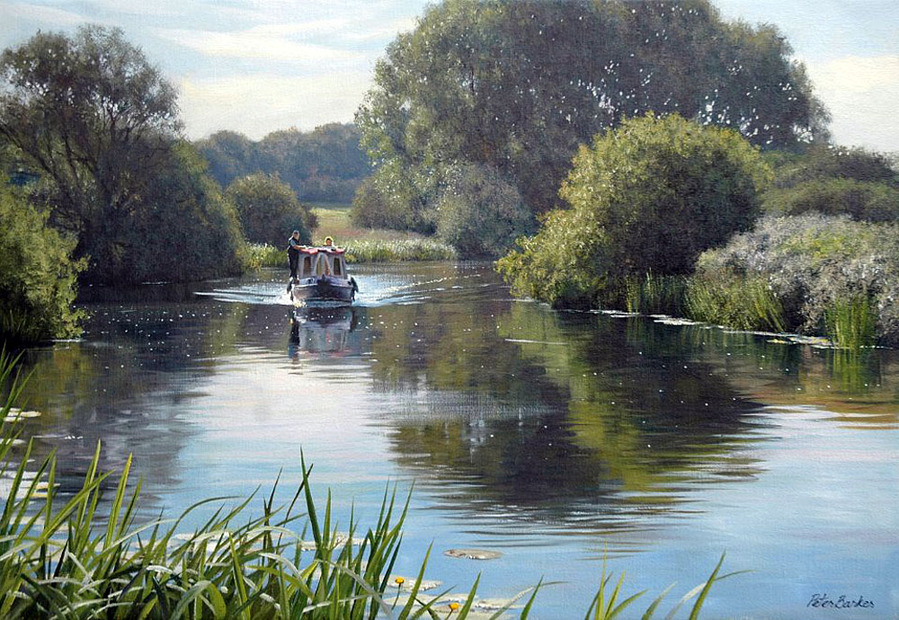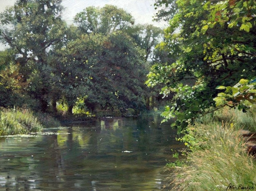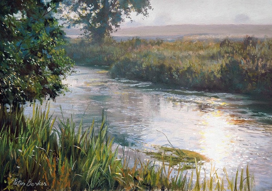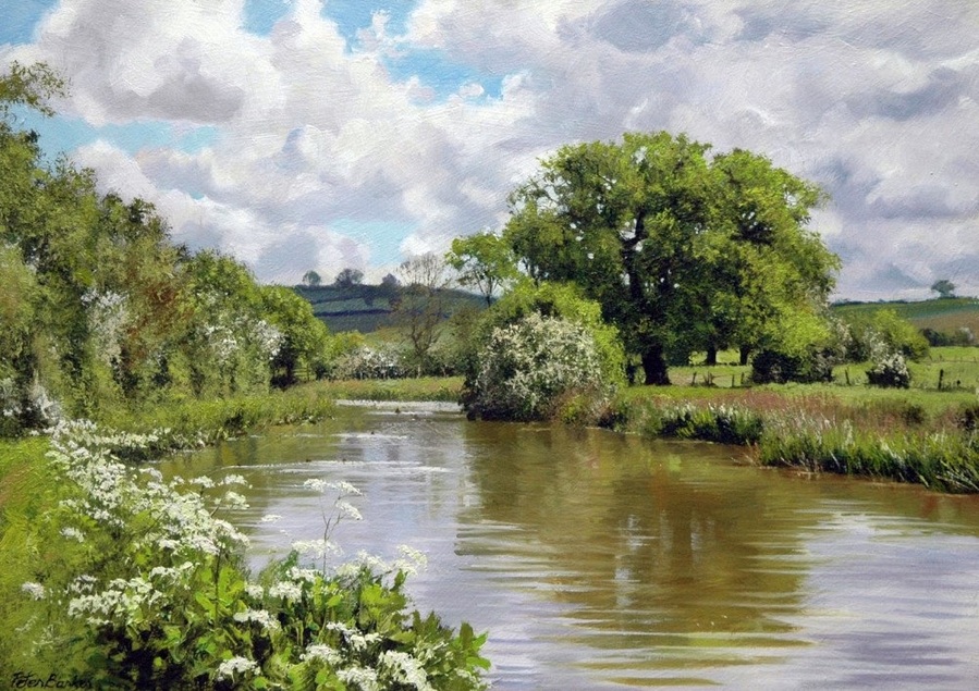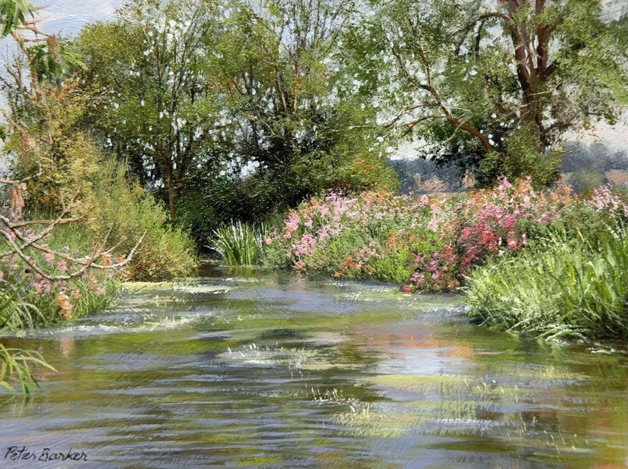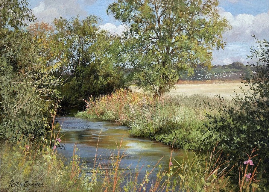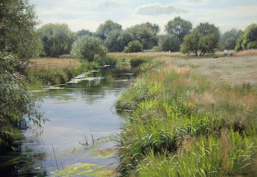Питер пишет в основном маслом, а иногда пастелью и акварелью, и особенно известен своим реалистичным изображением воды и умение создавать поразительные изображения листвы и растительности деревьев с помощью 1-дюймовой кисти декоратора для сада и огорода.