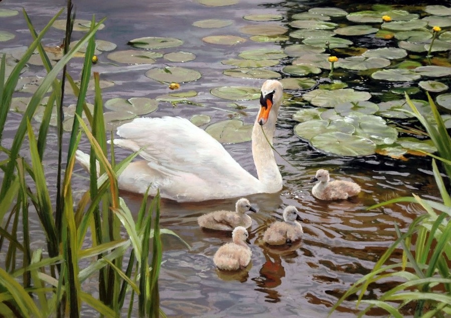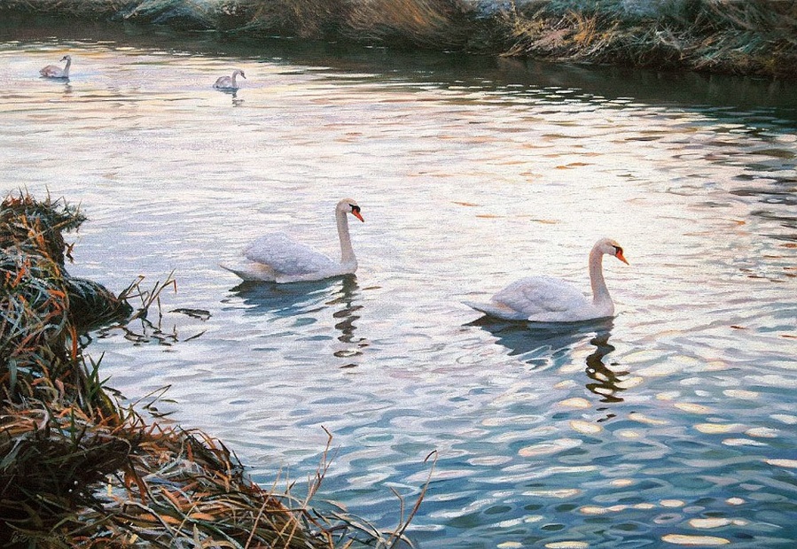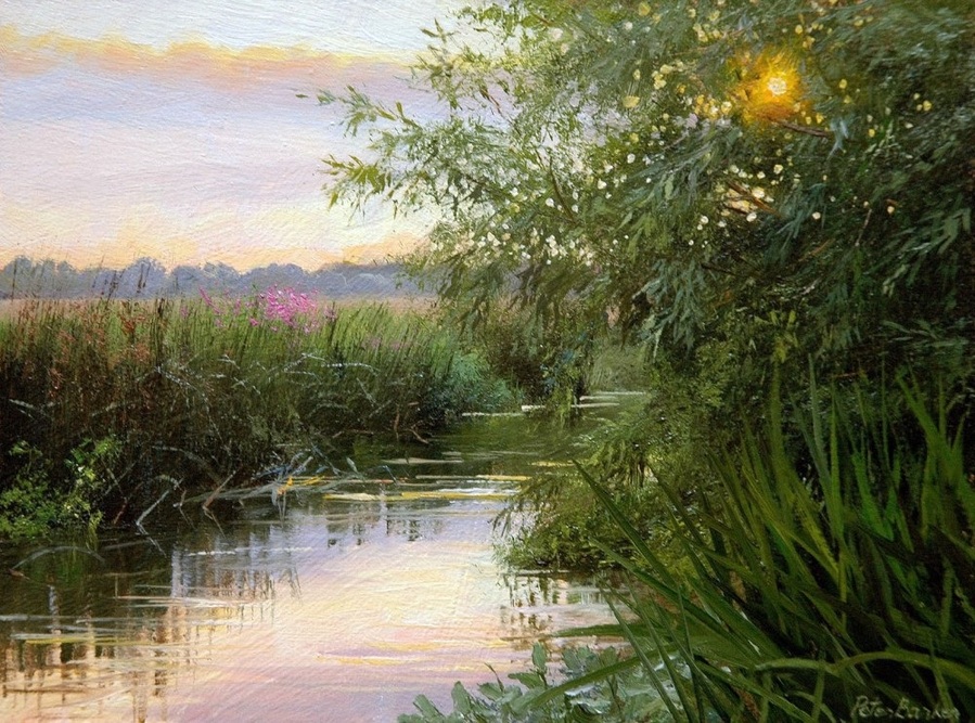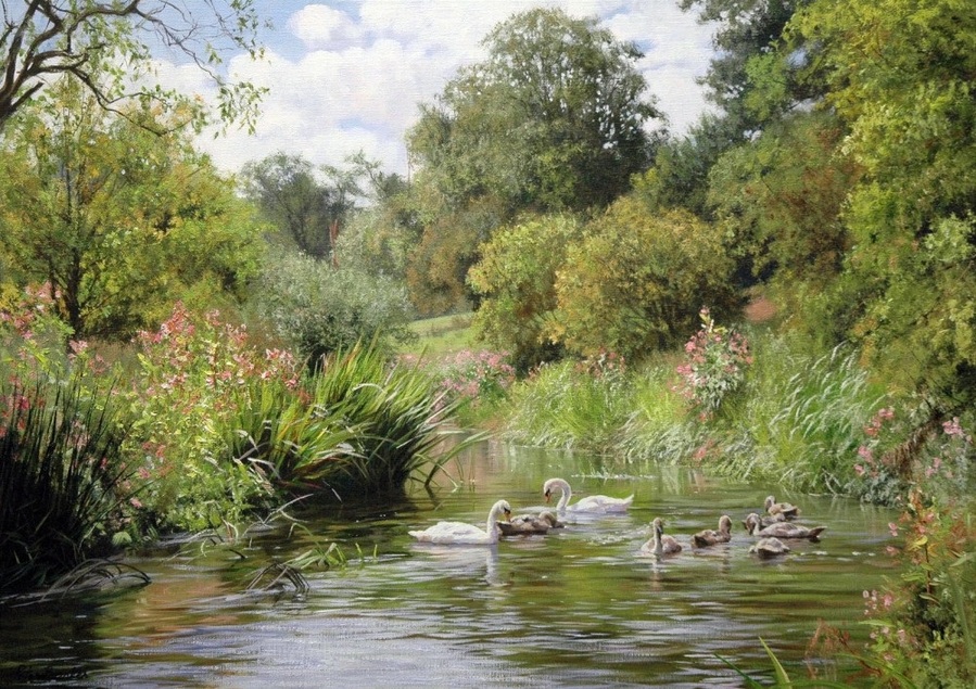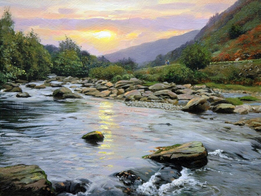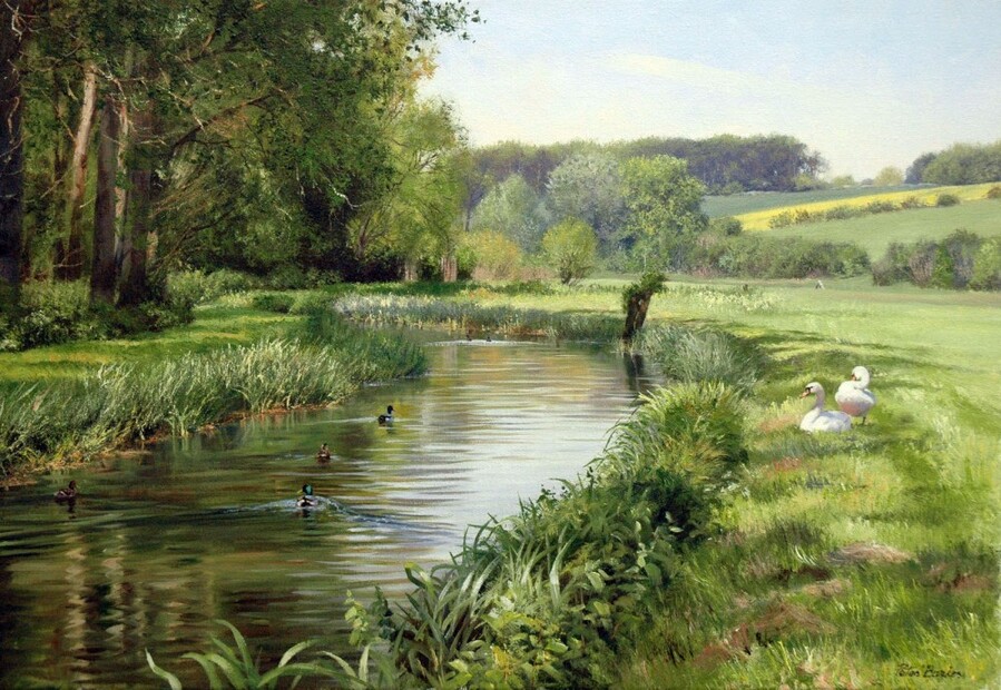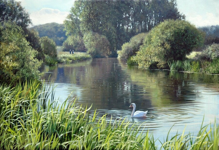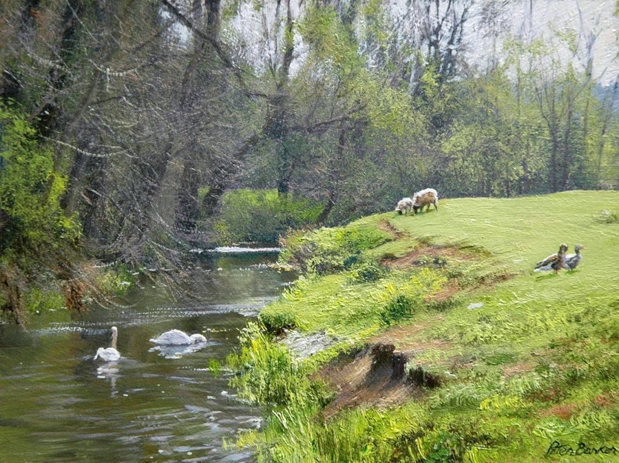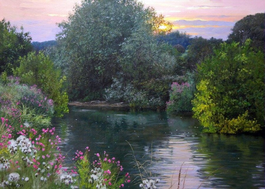 Питер пишет в основном маслом, а иногда пастелью и акварелью, и особенно известен своим реалистичным изображением воды и умение создавать поразительные изображения листвы и растительности деревьев с помощью 1-дюймовой кисти декоратора для сада и огорода.