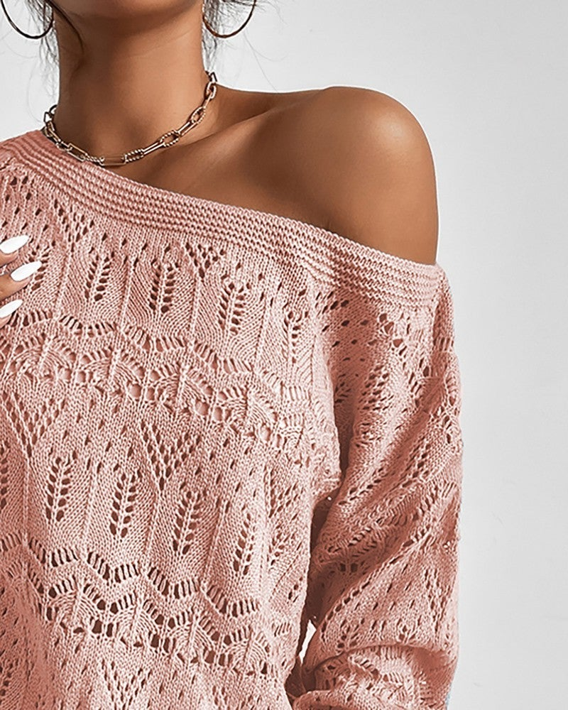 Джемпер имеет свою изюминку с точки зрения выкройки: он сделан с широким, но неглубоким воротом, который можно спустить на одно плечо. В остальном джемпер можно считать классическим: спущенное плечо, универсальная классическая длина и удобная свобода облегания. В целом это изделие получилось очень женственным, джемпер можно даже назвать вязаной блузой.