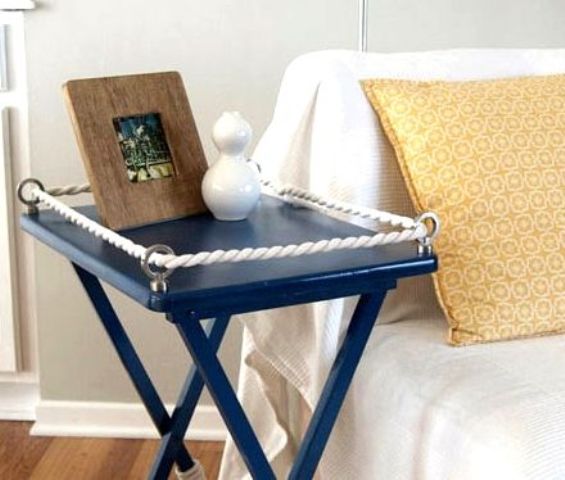 Мебель. Сделать или купить полки с веревкой, тумбочку, журнальный столик или кресло - полностью или частично. Для подвешивания стула можно использовать веревку - это будет продолжать свой пляжную тему. Всякие куски веревки будут добавлять морской шарм в ваш домашний декор.