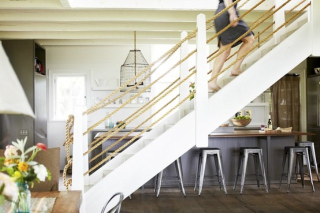 Интерьер. Обертывание перила, используя веревку в качестве разделителя комнаты, толстый канат вместо перил - это лишь некоторые идеи, которые вы можете использовать, дайте волю вашей фантазии!
