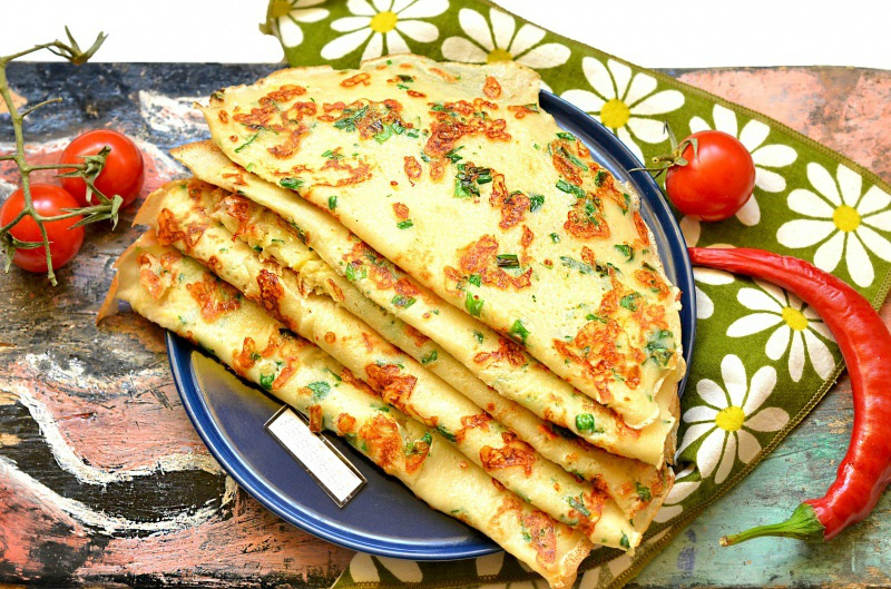 4. Вылейте 1/4 чашки теста на горячую сковороду и быстро поверните ее по кругу, чтобы тесто распределилось равномерно тонким слоем. Готовьте около минуты или пока края не начнут сохнуть. Переверните при помощи лопаточки и доведите блинчик до готовности с другой стороны, еще около минуты. Переложите его на тарелку и повторите с оставшимся тестом.