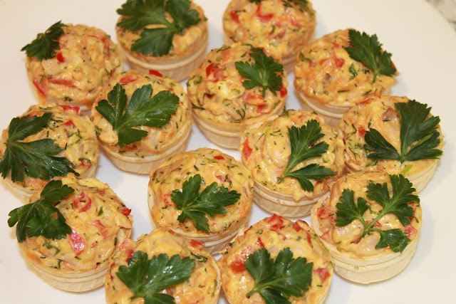 В продолжение темы закусок с морепродуктами сделаем тарталетки с тунцом консервированным.
