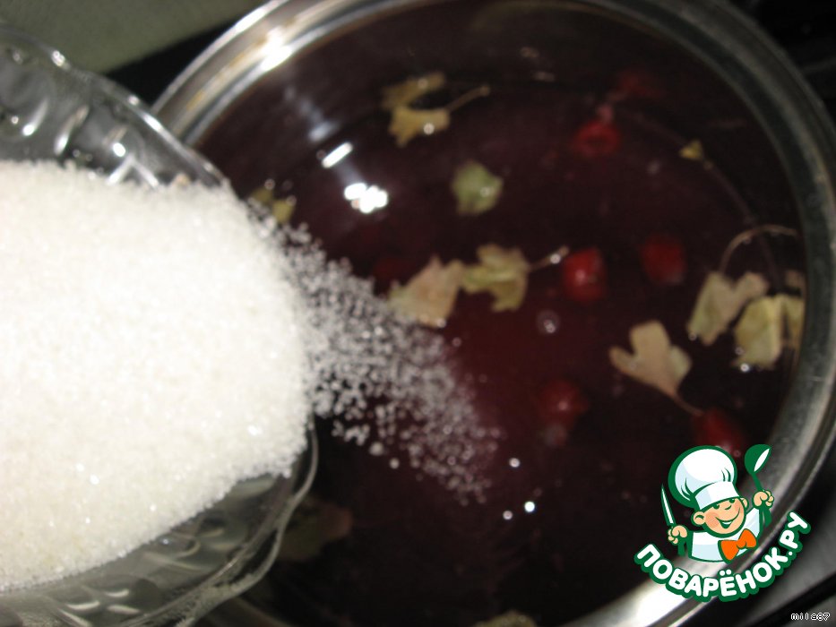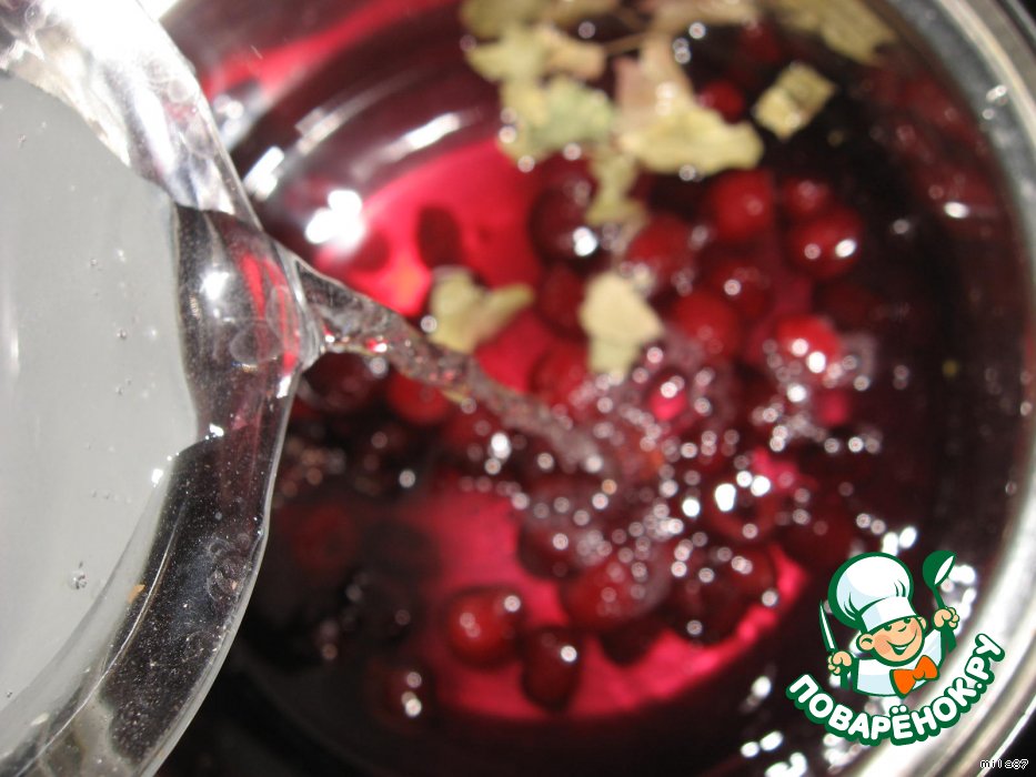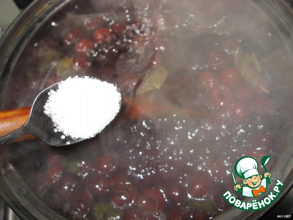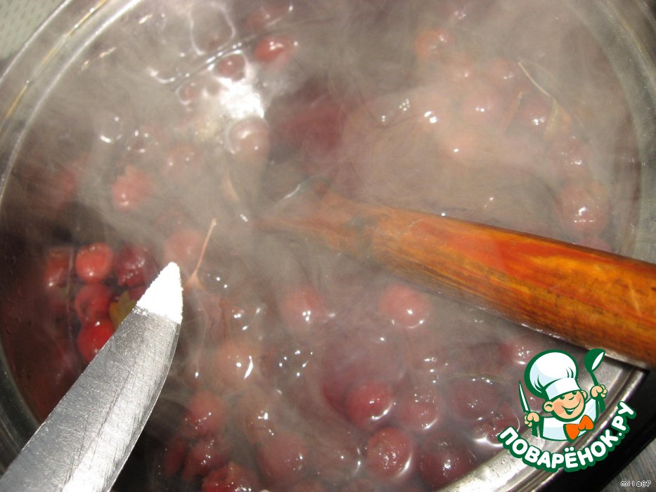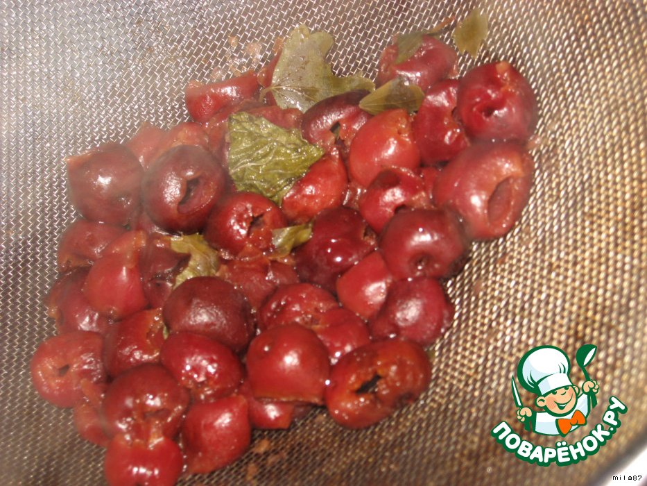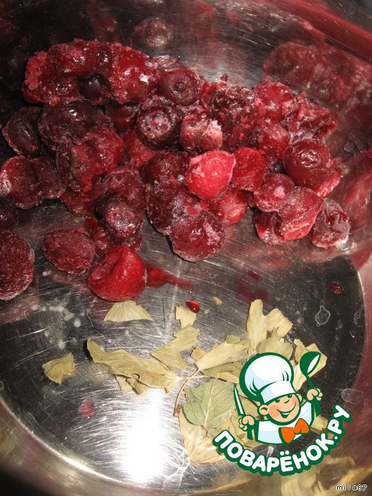 В кастрюльку положим размороженную вишню и листочки (если есть).