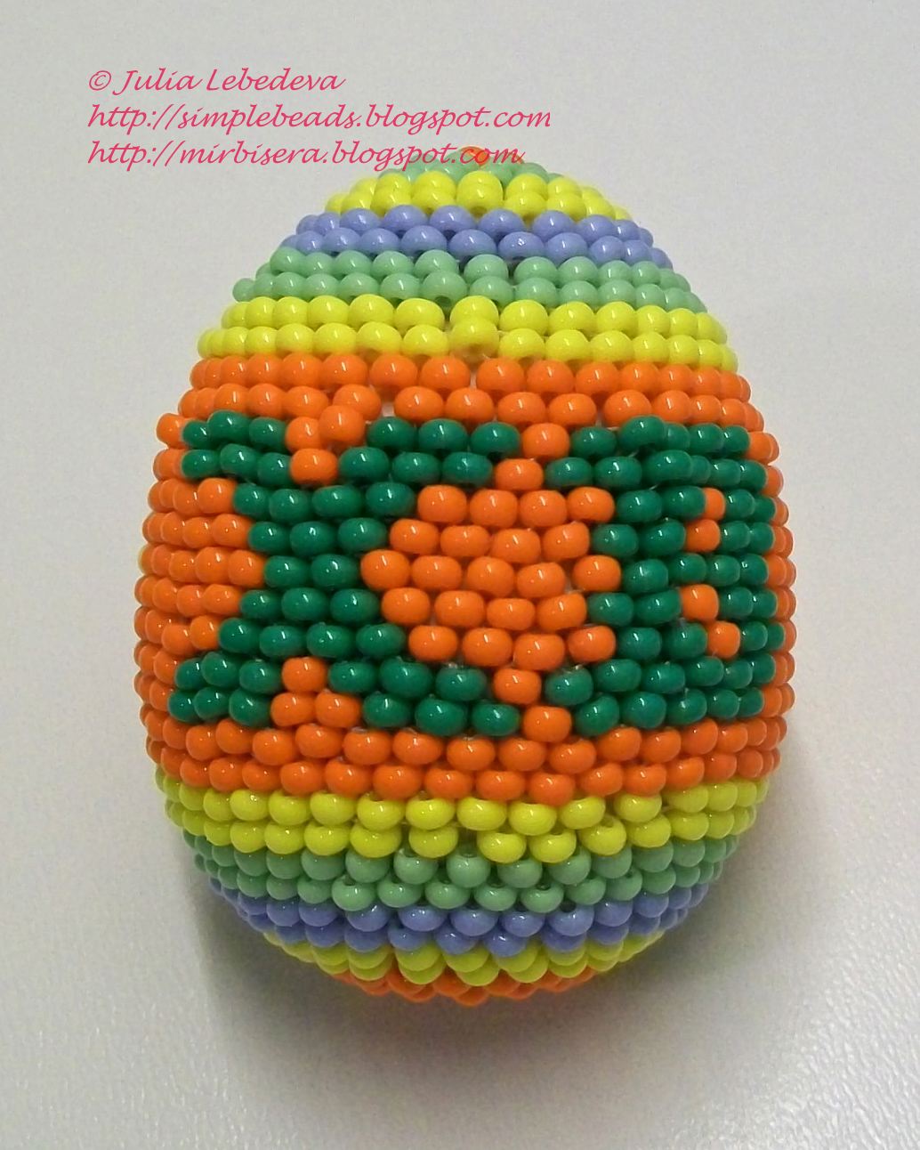 Оплетение пасхального яйца в технике кирпичного стежка. Автор: Julia
