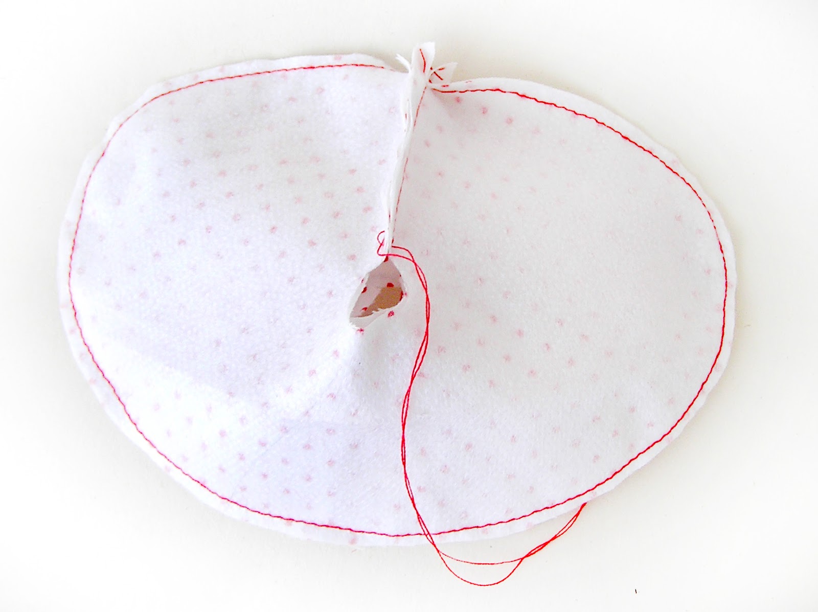 Убираем выкройку, прострачиваем, оставляя не зашитым низ (куда и будем набивать).