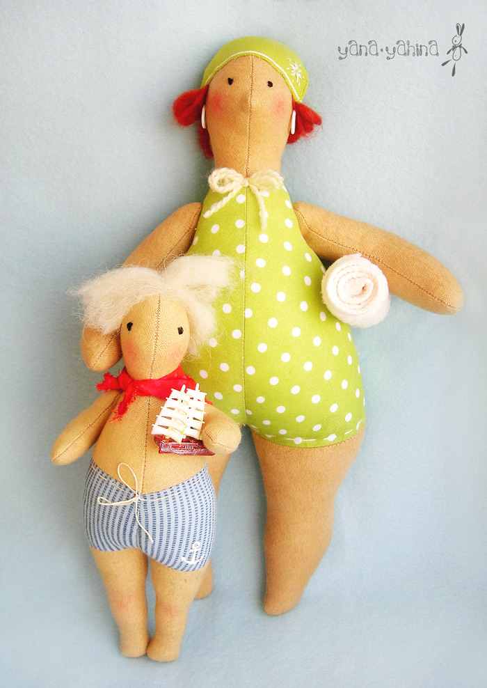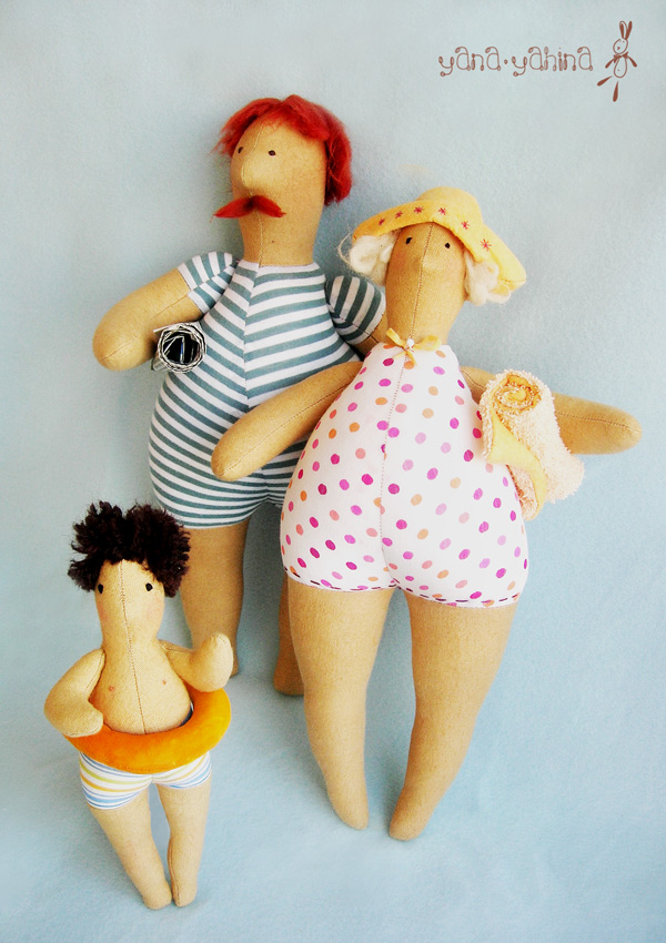 Для оформления витрины в ГУМе мне заказали сшить компанию тильд-купальщиц. Да не простую, а с детками, и Мужчиной!) Меня очень порадовал этот заказ, тильд вообще нежно люблю, а эти толстушки меня особенно умиляют) Ну, а детки - это вообще песня!)