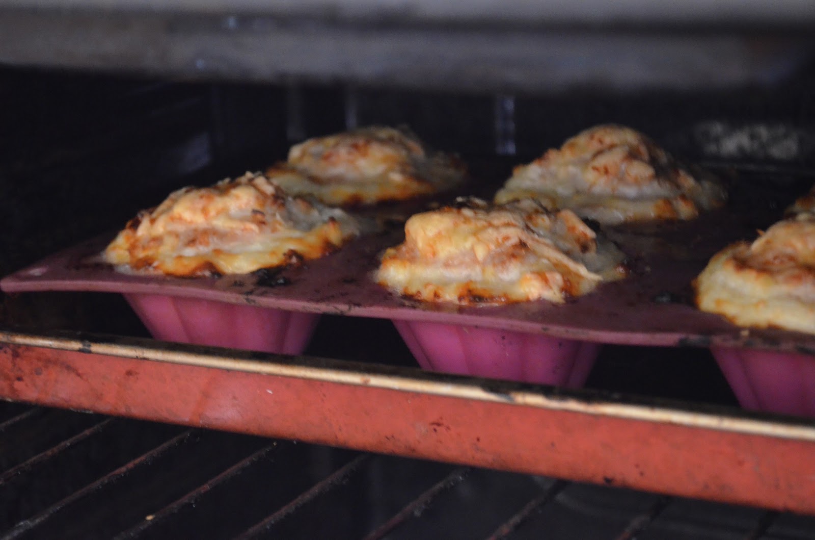 4. Картофельное пюре распределяем по формочкам для кексов. У меня силиконовые, я их смазала растительным маслом.