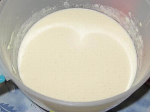 Потом начинаем готовить тесто. Все яйца сразу соединяем с очень мягким или растопленным сливочным маслом. Его у нас как раз осталось 100 гр.