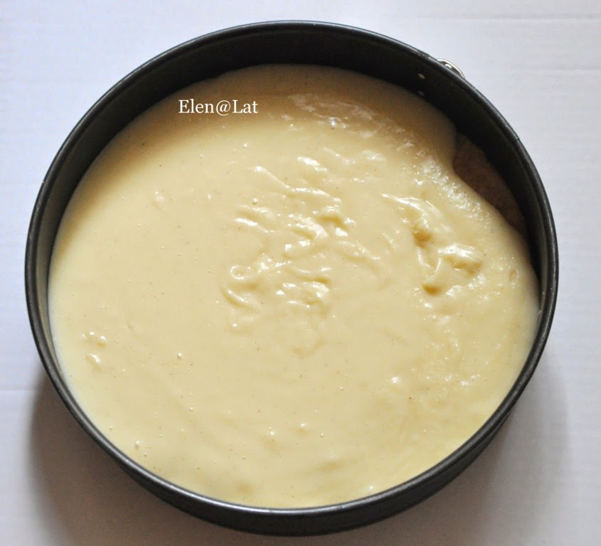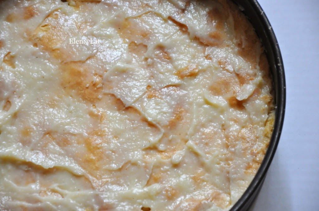 Теперь собираем пирог. Один корж положить в форму 28см на него сразу же вылить горячий крем. Отложив 2 ст.л крема для верха.