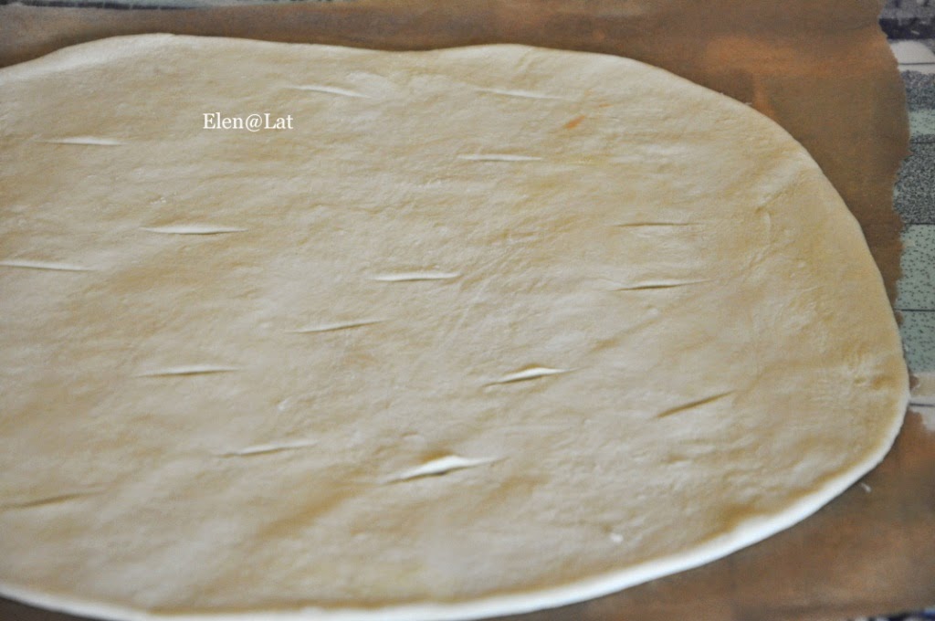 Замесить тесто из вышеперечисленных ингредиентов и убрать в холодильник не менее чем на 3 часа. У меня оно стояло ночь.