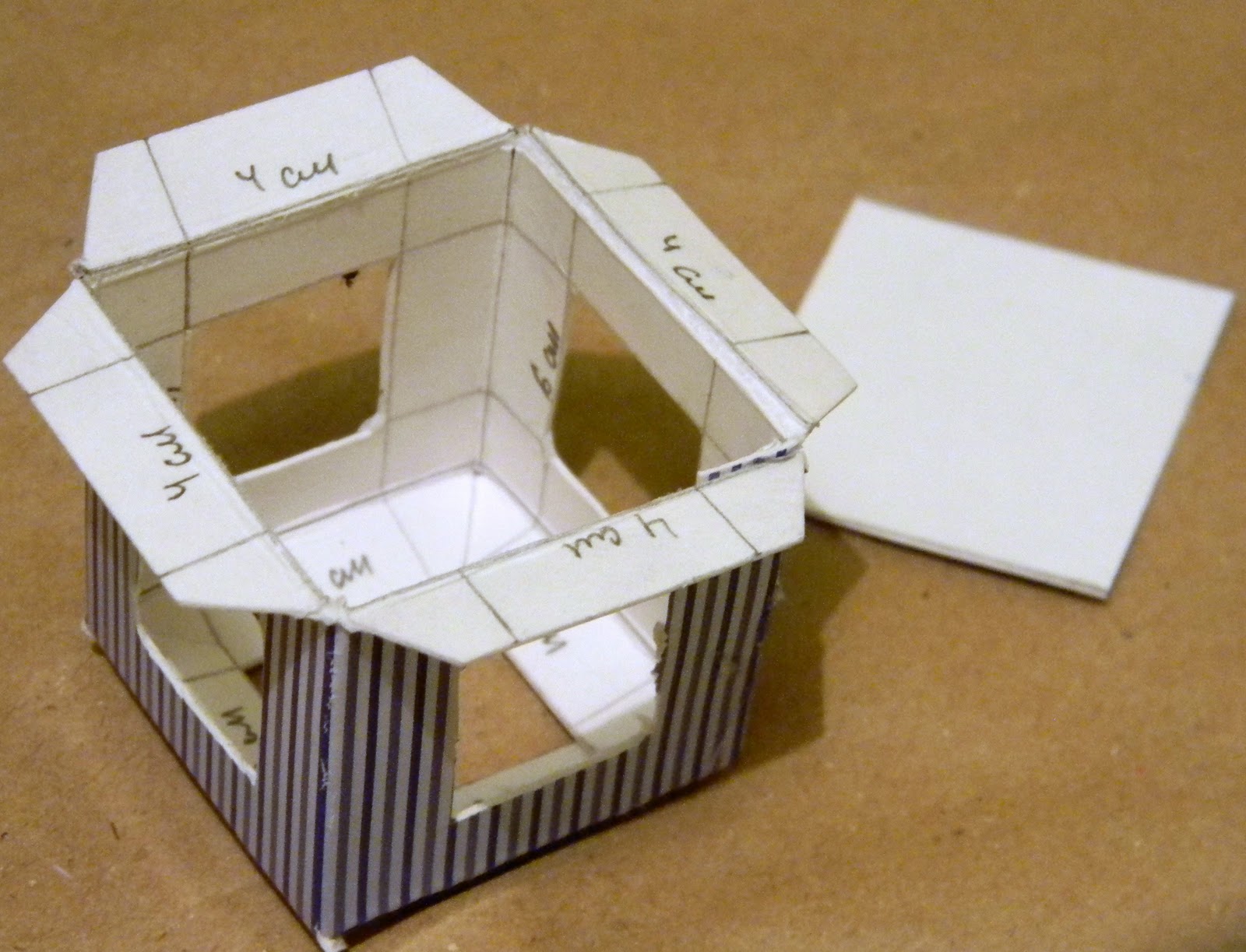 5. B склеенный каркас фонарика вклеиваем дно 1 деталь 4,0х4,0 и склеиваем с нижней заготовкой