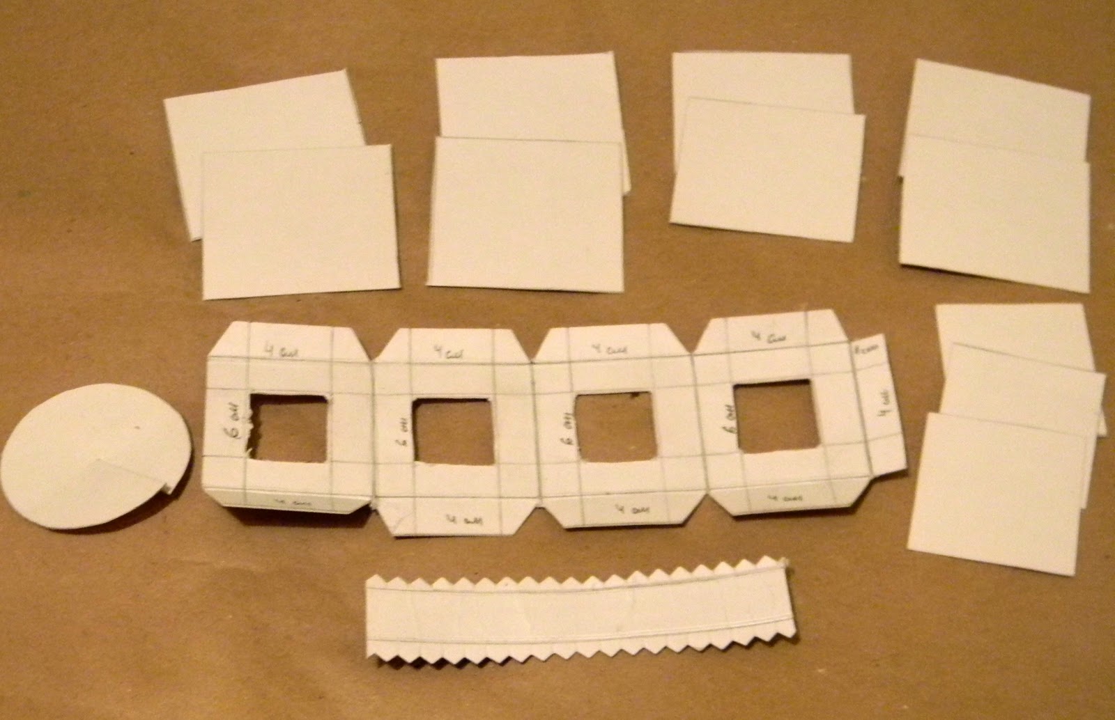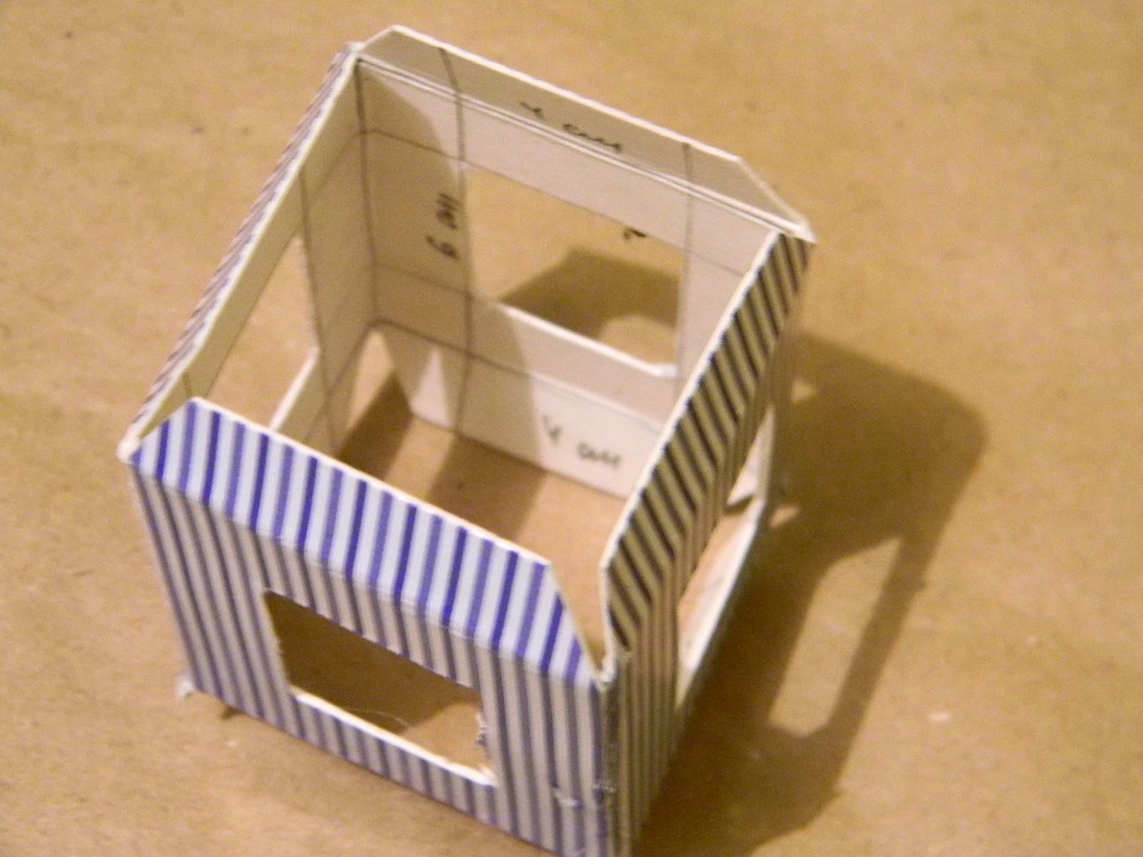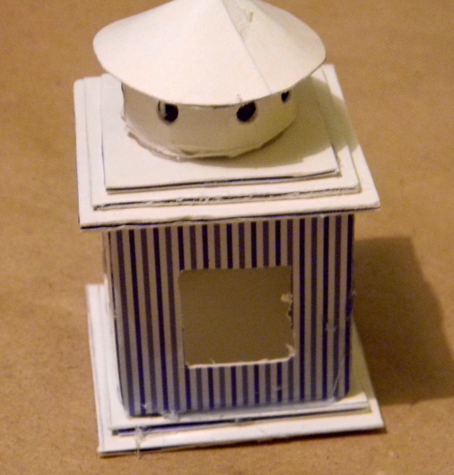 4. Bырезаем окошки размером 2,0х2,0 на всех 4 стенках фонарика, затем склеиваем на боковине