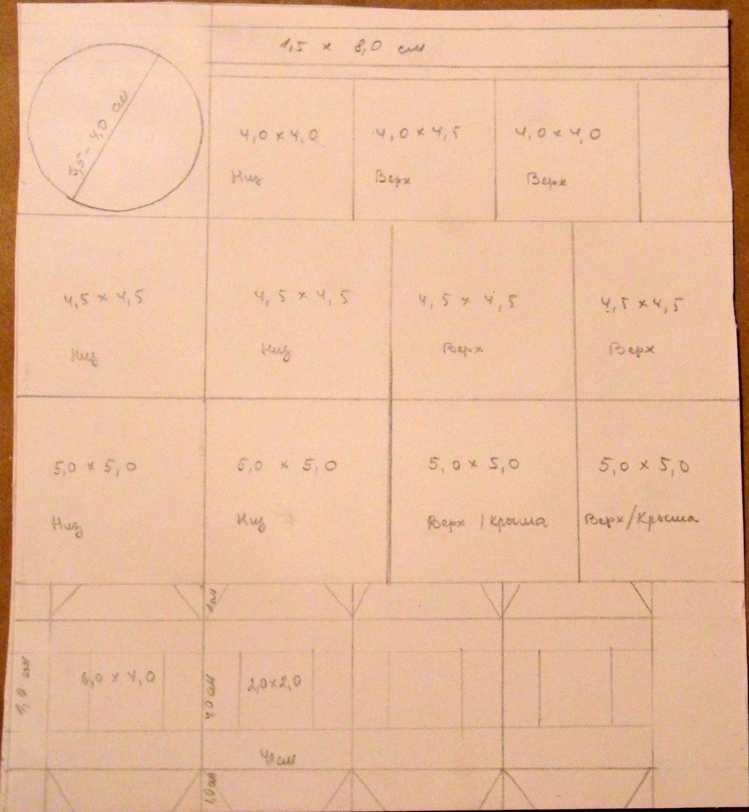 1. На картоне размером 15,0х15,0 (у меня это по секрету коробка из под пластырей). Рисуем на картоне схему фонарика как показано на фото.