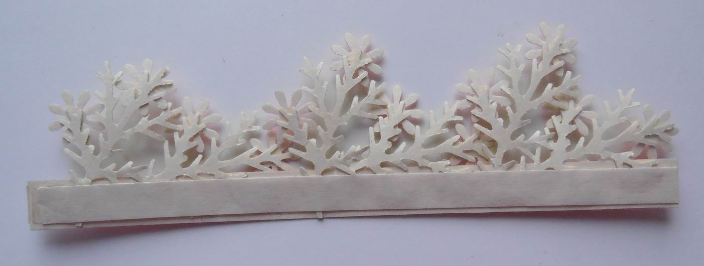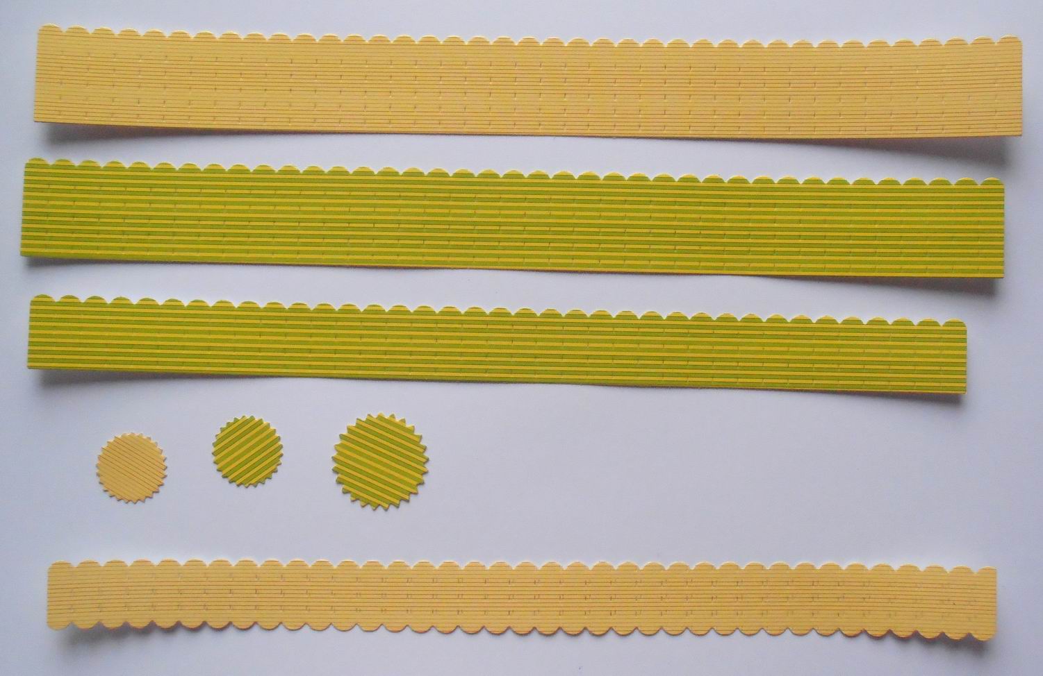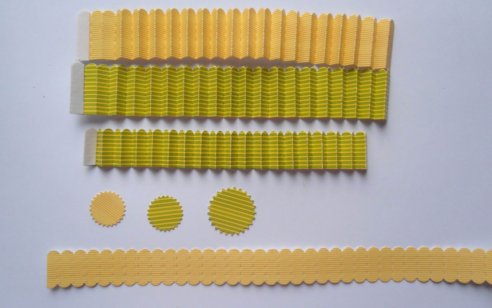 - Вырубка ножом Sizzix Sizzlits 657177 "Мини-розетки" или заготовка из листа бумаги, сложенная "гармошкой" - длина и ширина на ваше усмотрение. Размер вырубки - 24,6 х 2,5 см (39 секций) и 23,4 х 2 см ( 37 секций). Гармошку можно также сложить с помощью доски для биговки или воспользовавшись линейкой.