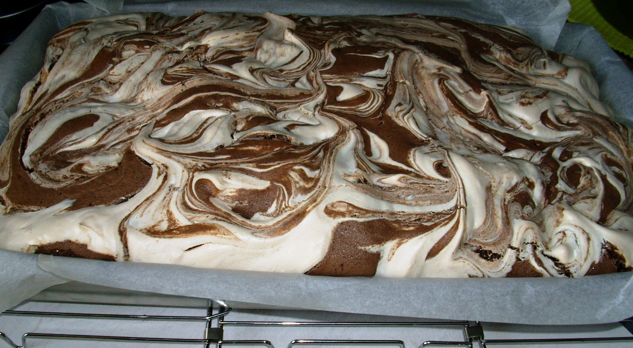 темное тесто: • 6 яичных желтка • 2 целых яйца • 6 столовых ложек сахара • 4 столовые ложки горкой муки • 2 чайные ложки какао- порошка • 1 чайная ложка выпечки