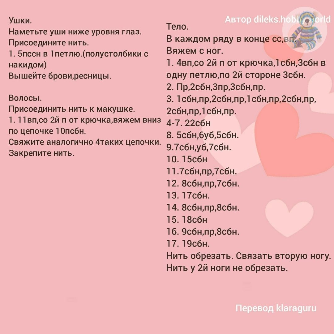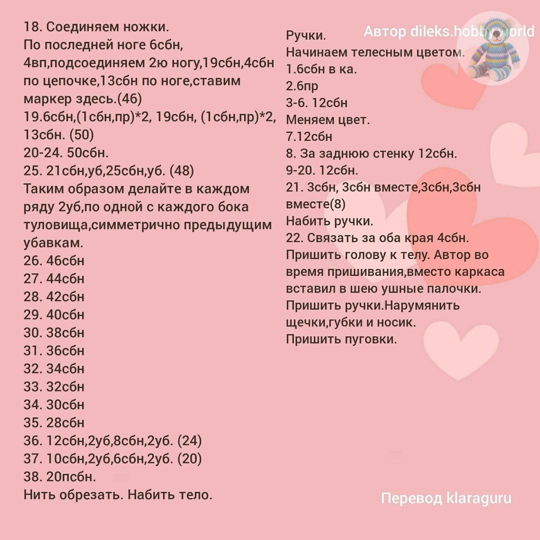 В переводе описания вязания ножек обнаружены ошибки, поэтому советуем посмотреть перевод описания автора, приведенный ниже (мы отметили, что у автора есть расхождение в одну петлю: в 3-ем ряду по нашим подсчетам должен получиться 21 сбн в итоге, но автор указывает 22)
