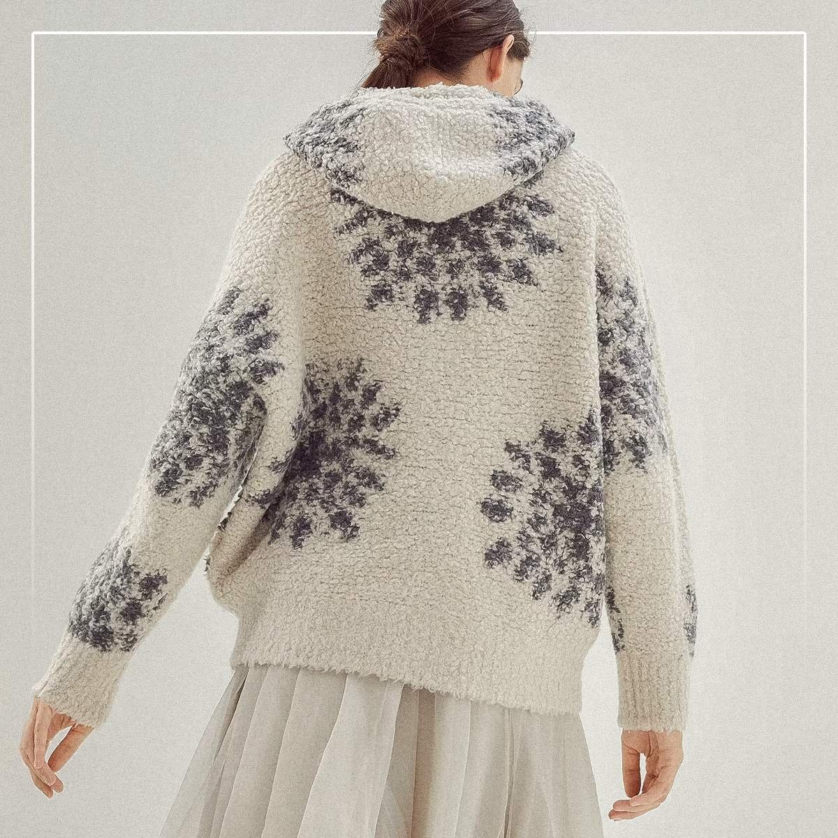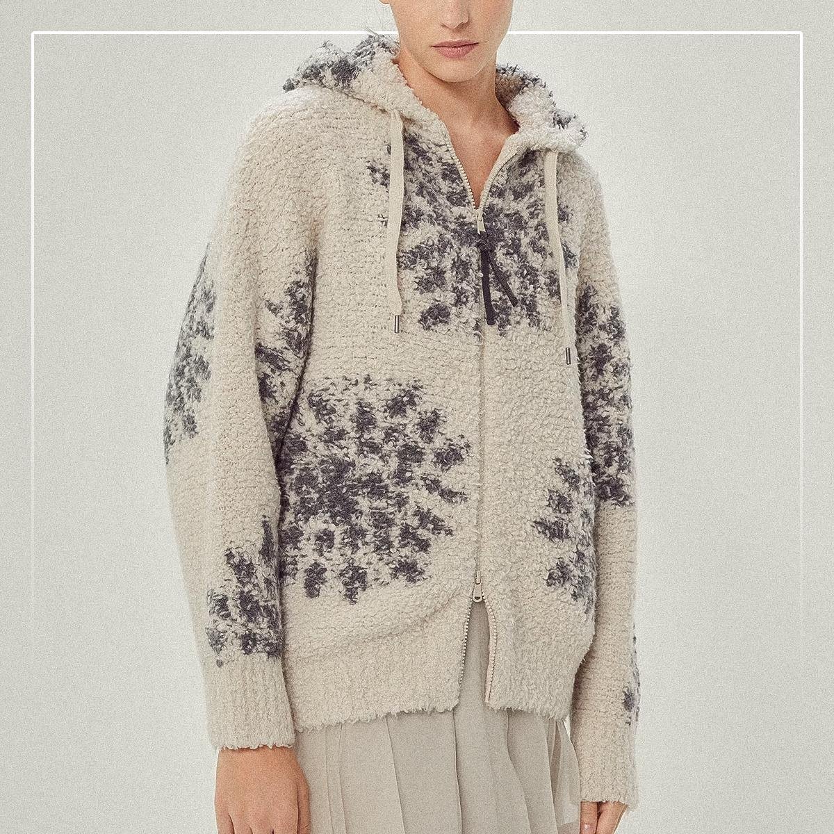 Чтобы получить подобный эффект, надо постараться найти оптимальную пряжу, а это не всегда просто. У дизайнеров бренда Кучинелли талант находить красивые дуэты.