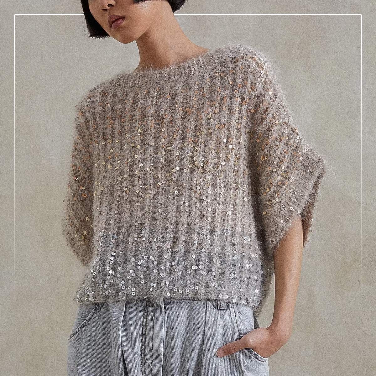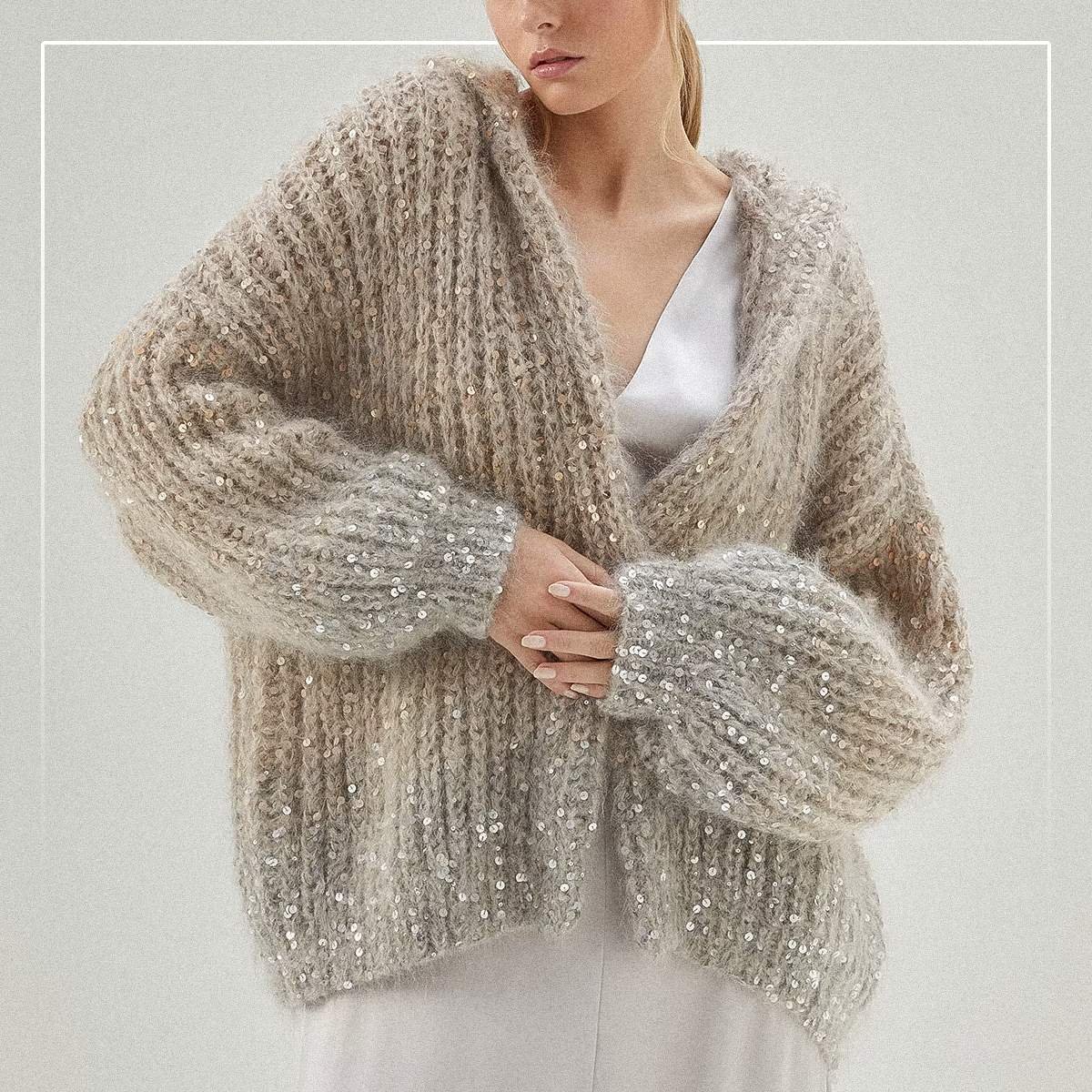 Кажется, что модель выполнена из градиентной пряжи, но на самом деле это не так. Виновницы эффекта — пайетки.