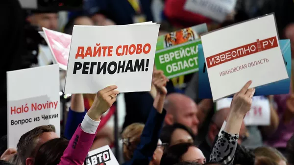 Белорусский журналист пригласил Путина в Гомель. Он также спросил, возможна ли межрегиональная встреча представителей субъектов, участвовавших в войне. Президент пообещал рассмотреть инициативу.