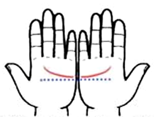 Если линии на сложенных руках находятся на одной высоте и перетекают одна в другую, отношения такого человека постоянны и прочны. Он спокоен, а его партнёр заботится о нём и окружает любовью.