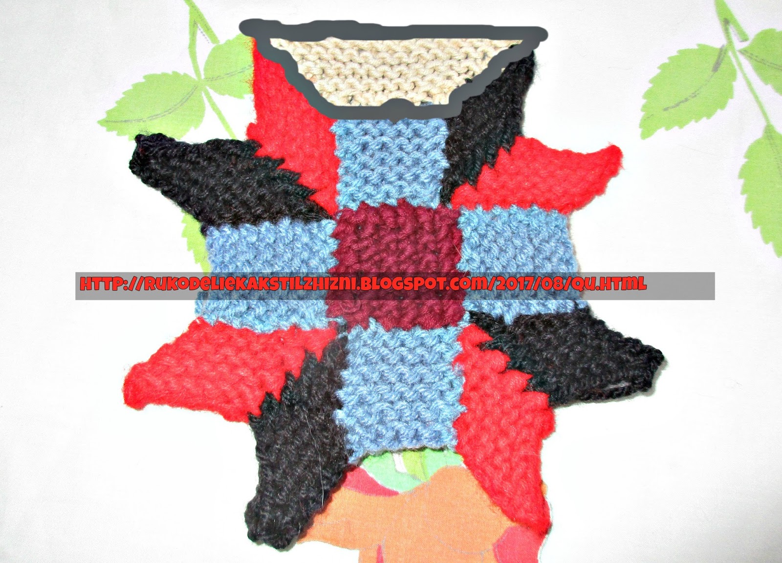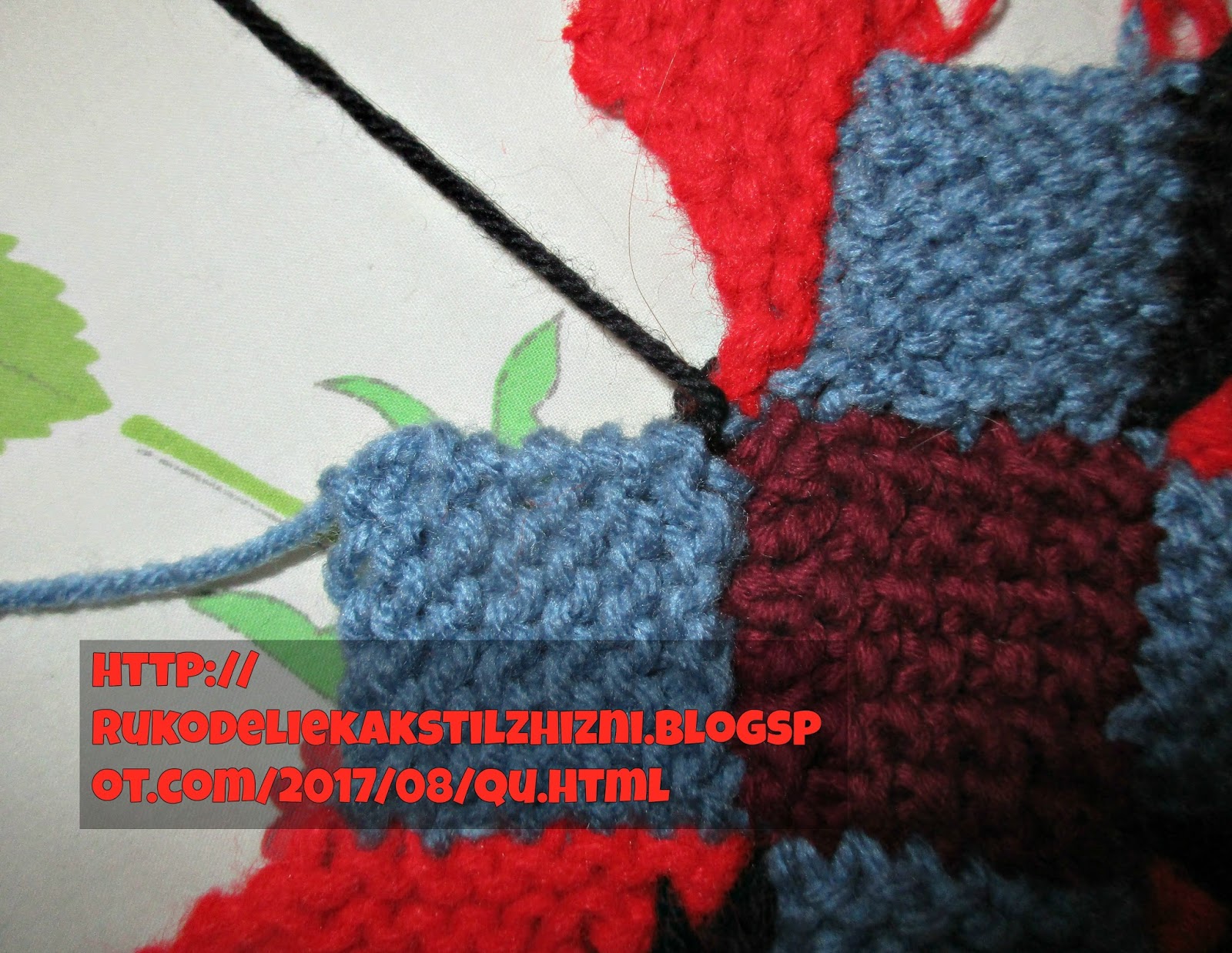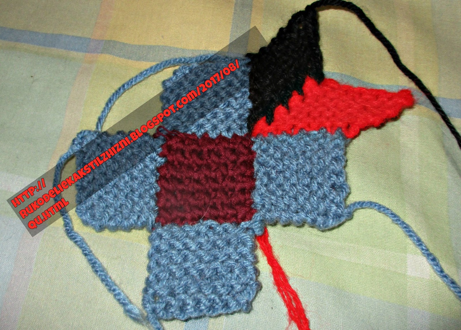 А дальше заполняем уголки методом пэчворковского квадратика, набрав по 2-м стенкам параллелограммов-8+8=16 петель.