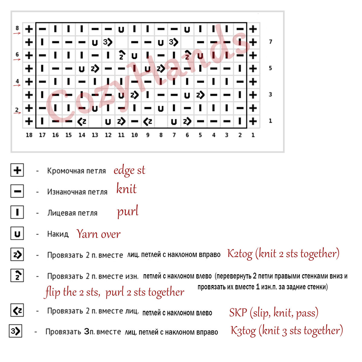 Далее повторять вязание с 1 по 8 ряд.