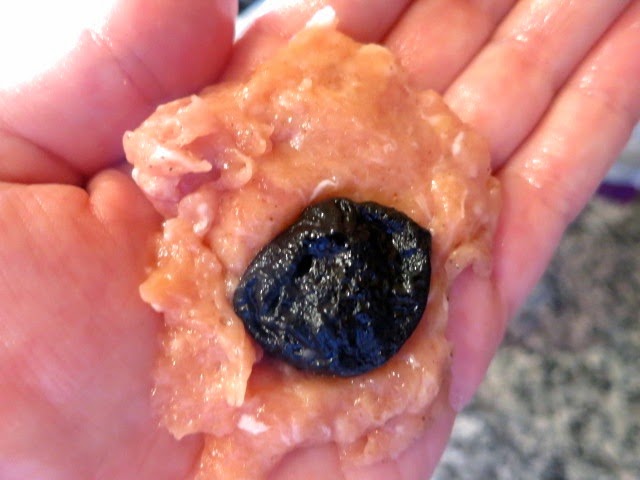 Представьте себе тефтели "с сюрпризом": разрезаешь "мясной шарик", а там - черносливина! Очень интересно, забавно и вкусно. К тому же сделаны эти тефтели из куриного фарша и приготовлены в насыщенном, пряном томатно-йогуртовом индийском соусе! Это блюдо называется "алу бухара" ("aloo bukhara") и принадлежит кухне северных регионов Индии. Для начинки тефтелей используются сушеные кислые сливы определенного сорта, которые тоже называются "алу бухара," но я делала блюдо с обычным черносливом. Сами тефтели получились легкими, диетическими, а чернослив внутри был мягким и нежным. Соус на основе томатного пюре с йогуртом и пряностями (типичный в северных штатах Индии) хорошо подходит к этим тефтелям и оттеняет их вкус. Добротное, сытное, вкусное блюдо "с изюминкой!"