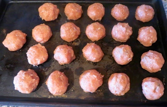 Укладываем тефтели на поднос и на время оставляем. [Можно сделать их заранее и хранить до момента приготовления в холодильнике.]