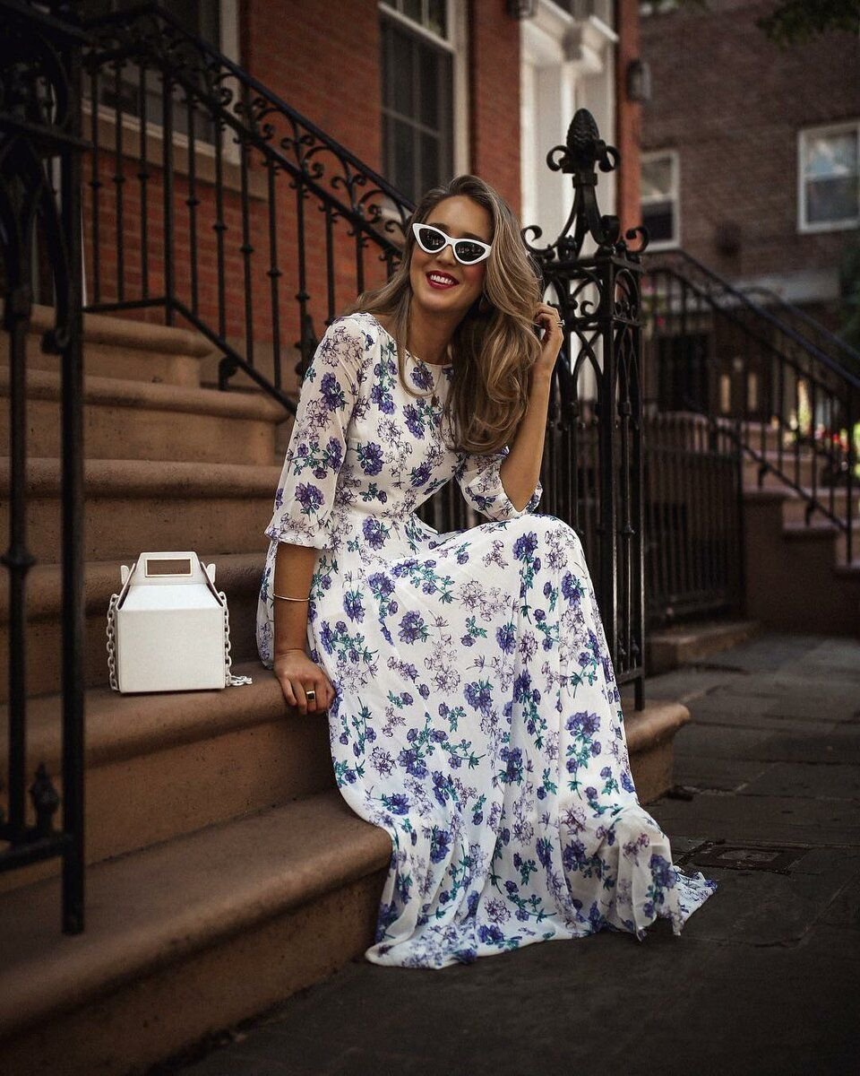 Расцветка просто огонь! Я такие сочетания очень люблю, а длину макси - тем более, но постоянно изменяю ей с миди. Если вам хочется иметь в своем гардеробе не просто красивое платье, а еще и нарядное платье, делайте ставку на подобный принт, в котором "много белого". Источник edinayauk.ru; vdresse.ru; www.pinterest.ru