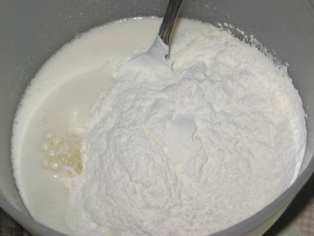 Добавим к этому сметану. Потом муку.