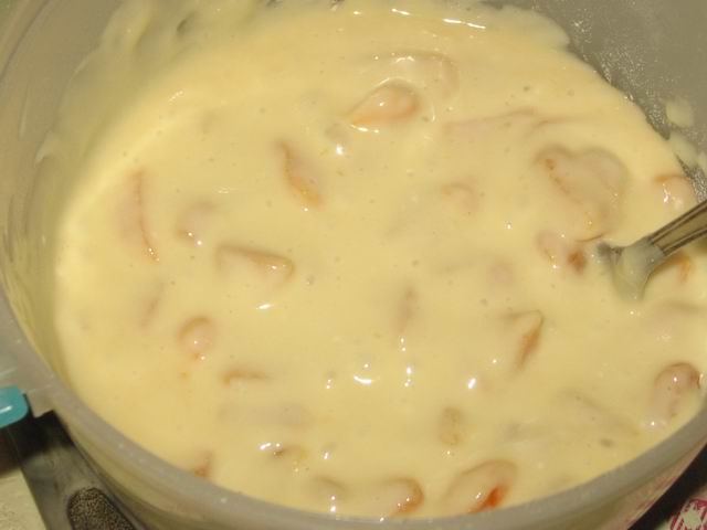 В готовое тесто добавим курагу, перемешаем.