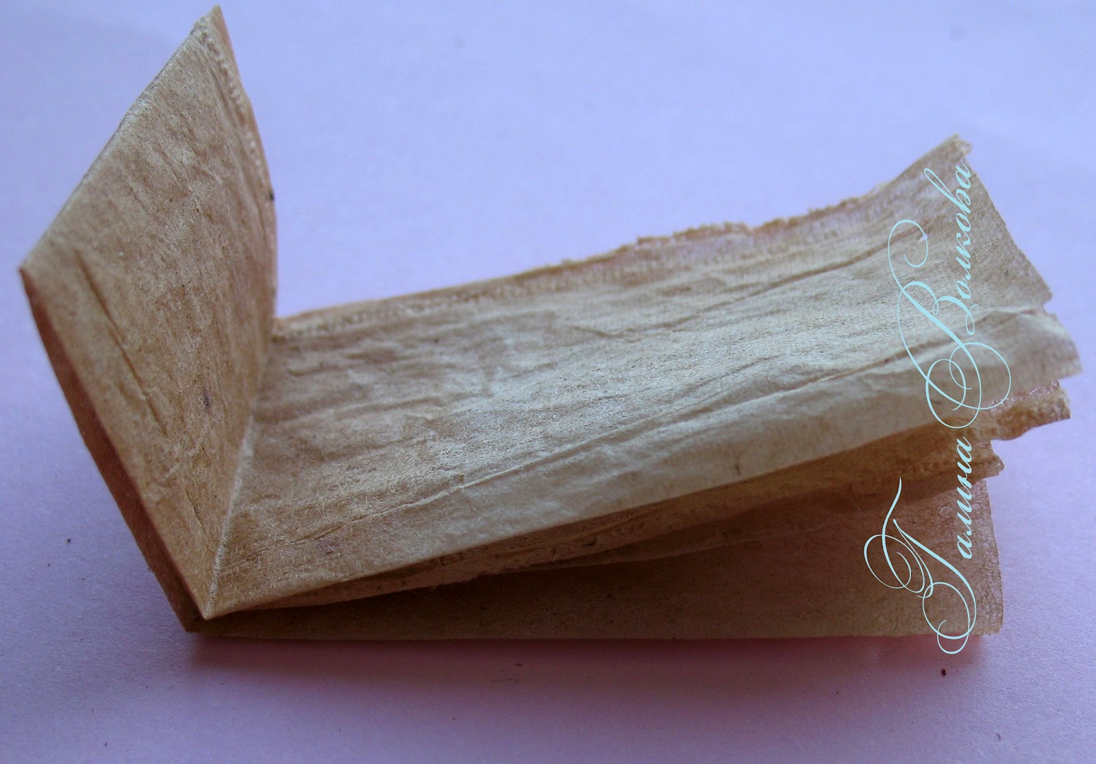 Ничего страшного, если на вашем пакетике остались гранулы чая, после высыхания пакетика, вы без труда их стряхнете. Если вам неприятно проделывать эту процедуру, то можете промыть развернутый пакетик под струей воды, до того, как будете его сушить, но в этом случае, вы смоете насыщенный цвет чая и пакетик станет более мягким, что затруднит дальнейшую работу.