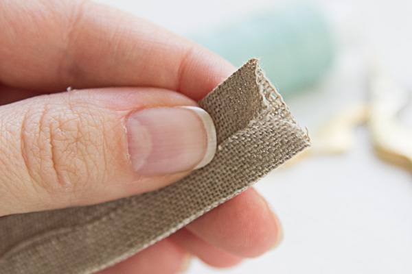 4. Готовим бортик-нужно чтобы он был достаточно жесткий. У меня лен для бортика и так плотный и я просто склеила его паутинкой, завернув бортики внутрь.