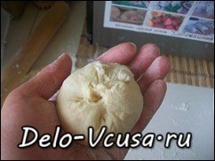 Края пирожка соединяем так же как у вареников, а потом либо стягиваем все края в центре (как показано на картинке), либо слегка прижимаем шов делая пирожок немного плоским.