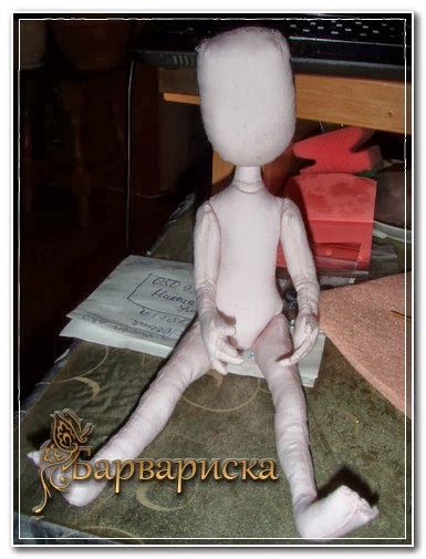 Пальчики выворачивались легко и просто, проволку для них я использовала....- ершик для чистки трубки, - муж иногда балуется. Мне показалось, что она более мягкая и пушистая. Кстати, проволочный каркас для пальчиков в текстильной кукле делала тоже в первый раз. Ручки ы чулочной технике делаются абсолютно по другому. И еще, я поняла, что мне все таки удобнее голову набивать, разрезая сзади крестообразно.Намучилась, я конечно , с набивкой через макушку....несколько раз переделывала...И все равно не очень довольна.