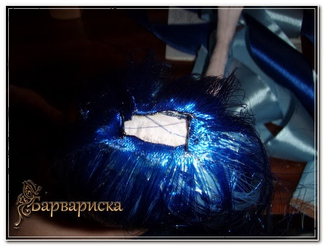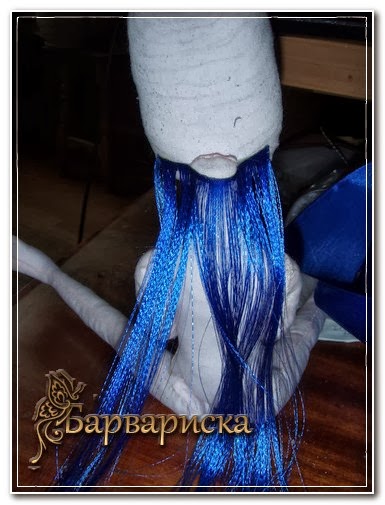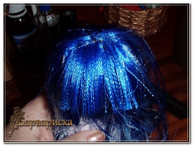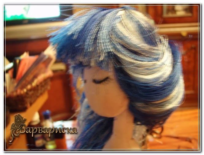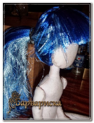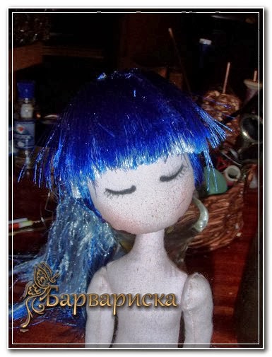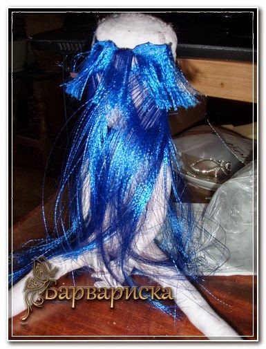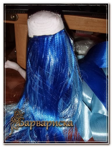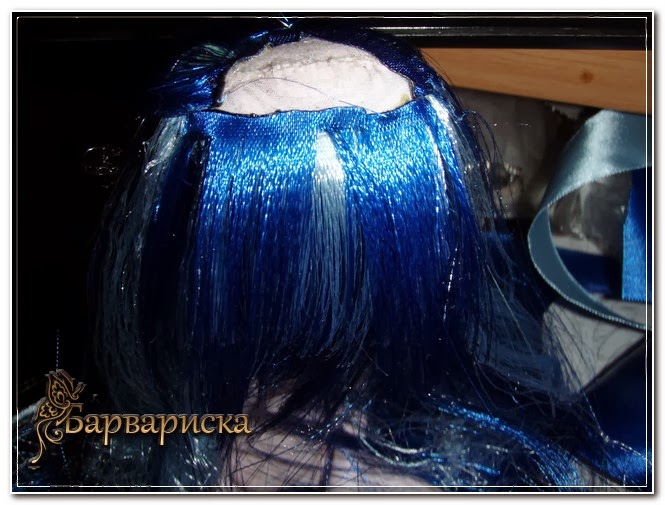 Ну вот)) Волосы я сделала из атласных лент, впервые надо сказать. Главное в распускании лент, найти ниточку тормозящую и вытащить ее. Ну я больше на ощупь это делала, зрение не то, эта ниточка более жесткая на ощупь.
