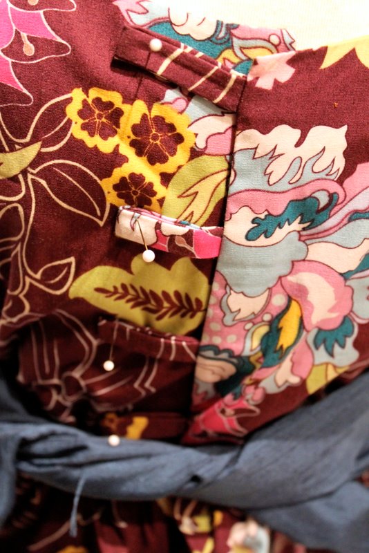 Переходим к поясу. Сложите части, которые вы выкроили ранее пополам лицевыми сторонами друг к другу и срежьте оба конца по диагонали. Прострочите по краю, оставив 8-10 см для выворачивания. Выверните пояс на лицевую сторону. Проутюжьте. Вручную зашейте отверстие, которое использовали для выворачивания.