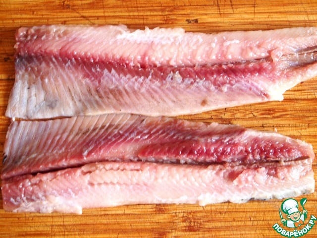 Селедку разделать на филе. Нам понадобится 1/2 часть. |