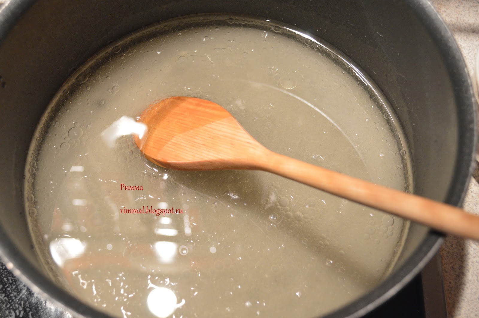 Добавляем мед и держим на медленном огне до полного растворения сахара. Снимаем сотейник с огня и даем немного остыть.