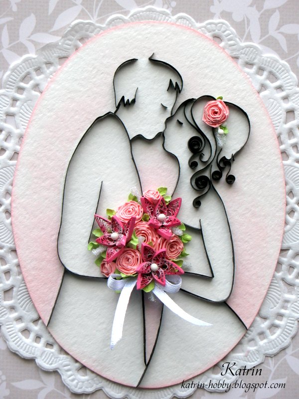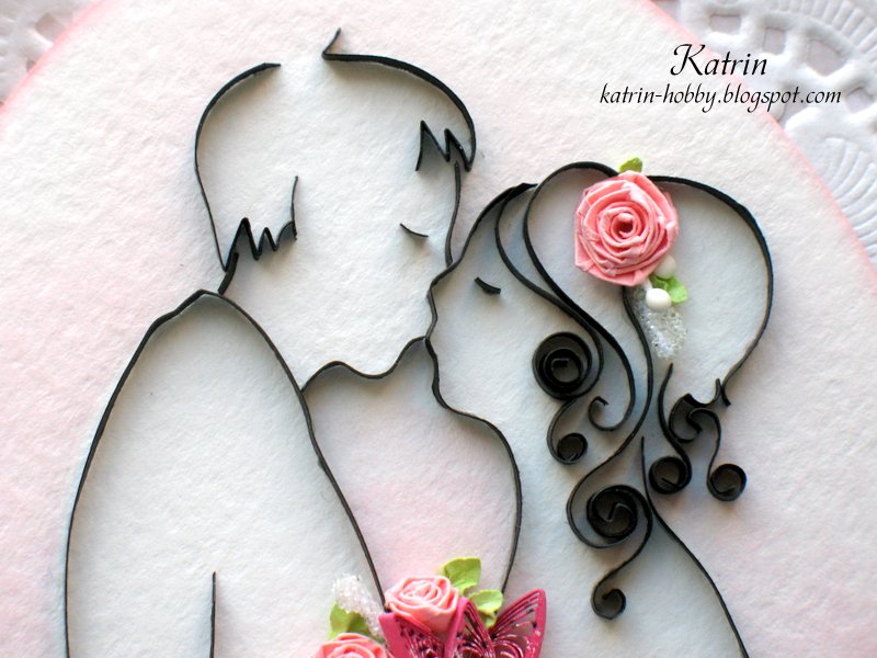 У меня сразу родилась идея, которая воплотилась в открытке с влюбленными силуэтами...Не стала загромождать лишними детальками, хотелось очень сконцентрировать внимание именно на молодоженах.
