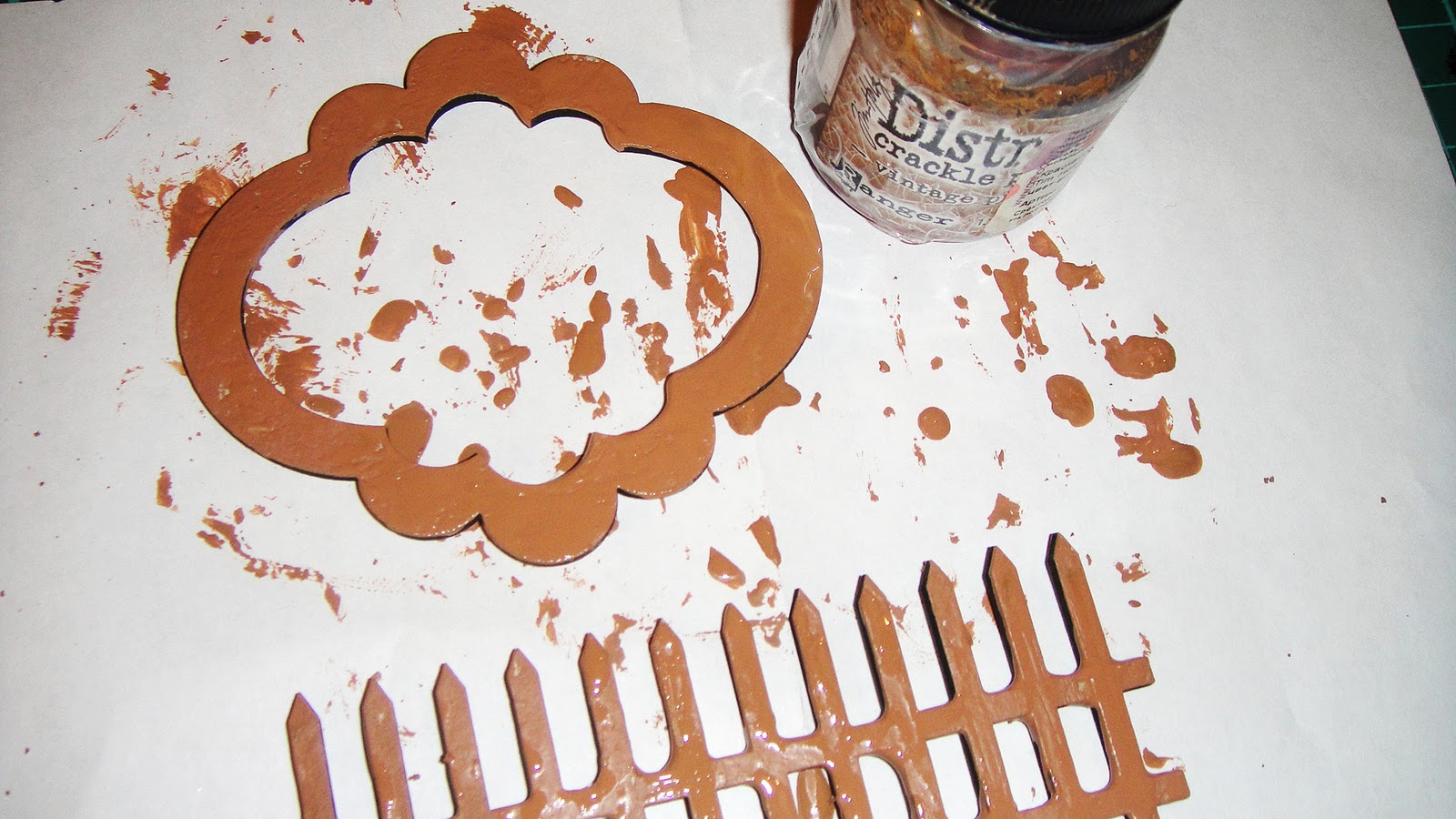 Сначала я покрыла их краской-кракелюр от Tim Holtz "Vintage photo"