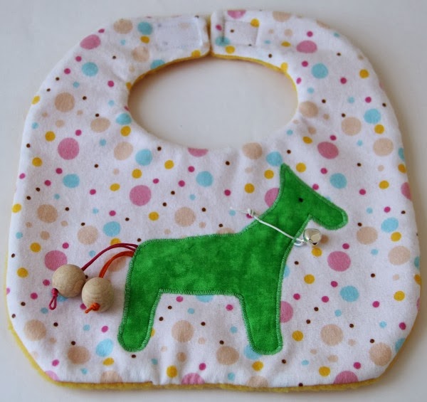 6. Нагрудник "Лошадка с колокольчиком". На шее у лошадки пришит бубенчик, поэтому эта лошадь еще и со звуковым эффектом!